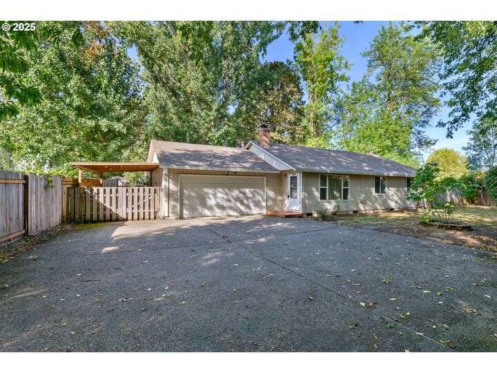 Welcome to this well-maintained, move-in-ready ranch-style home! This charming 3-bedroom, 2-bath home sits on a generous 0.33-acre level lot, offering both privacy and space—one of the best values in the area! Recently updated with fresh interior paint and luxury laminate flooring, the home features an open floor plan, high ceilings, and a bright, spacious living room. The dining area opens through sliding doors to a large deck and fully fenced backyard, perfect for entertaining, gardening, or simply relaxing in a peaceful setting. An oversized two-car garage, covered carport, RV parking, and ample driveway space provide plenty of room for vehicles and hobbies. Combining comfort, convenience, and functionality, this move-in-ready home is waiting for you to enjoy. Don’t miss out—schedule your private showing today!