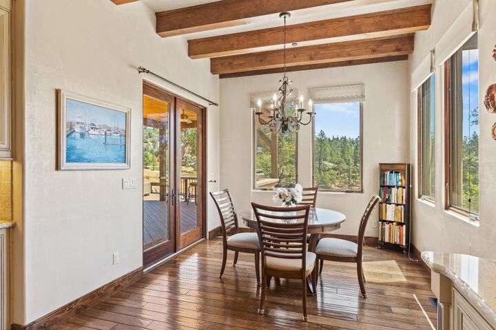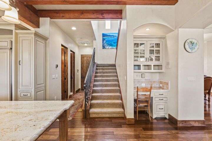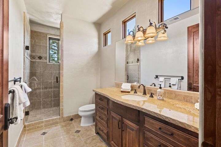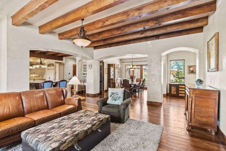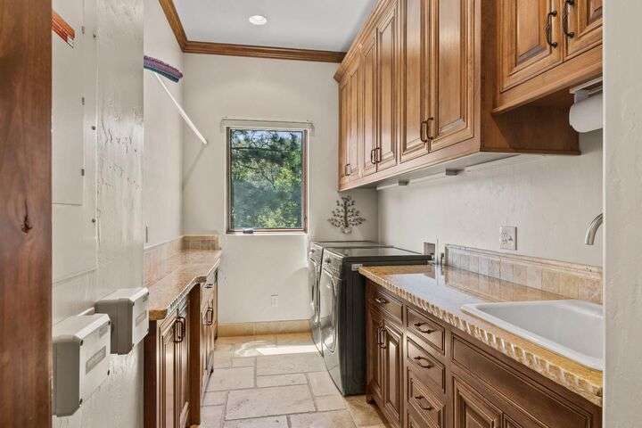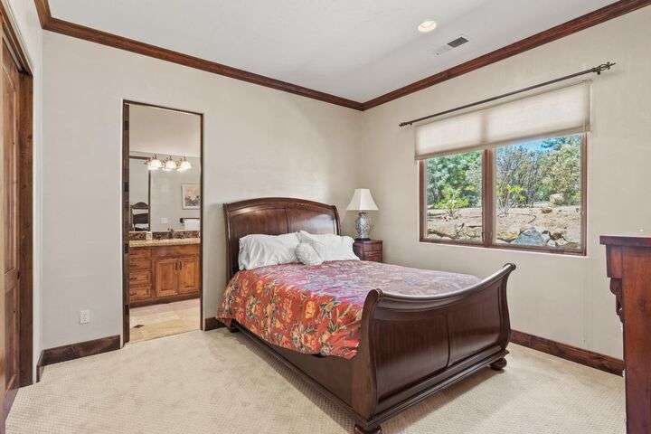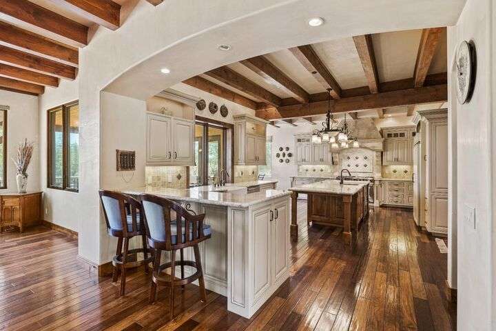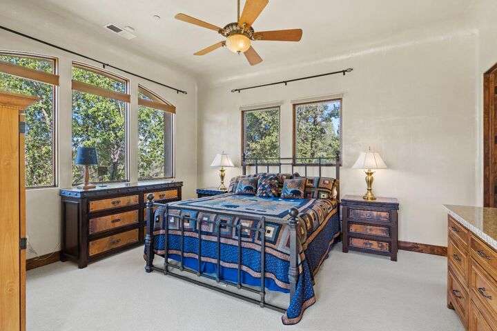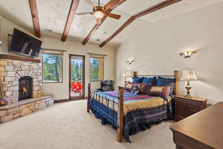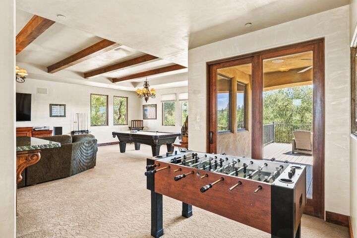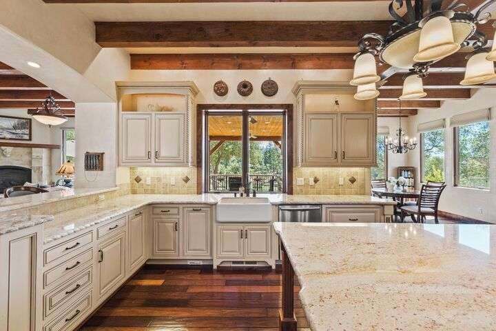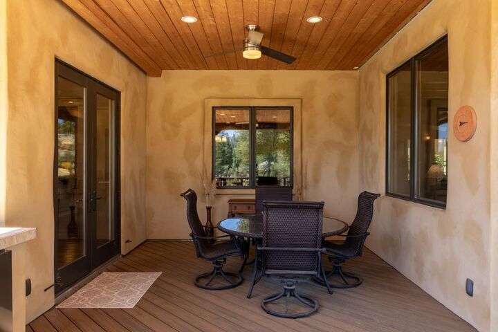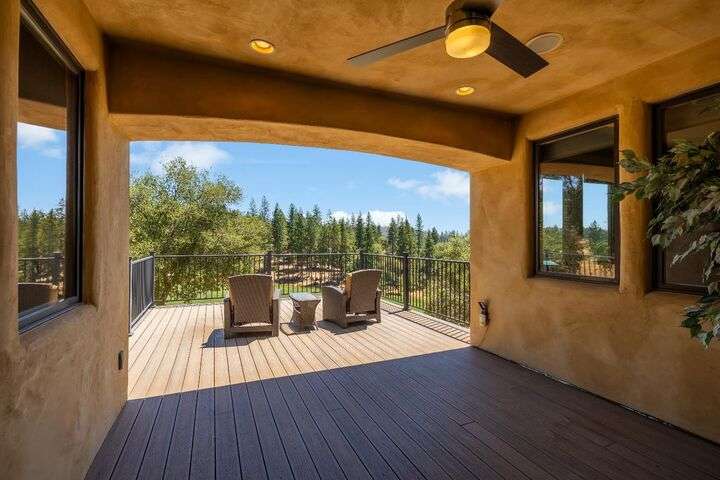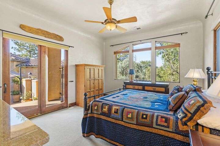 A Tuscan Masterpiece on the 18th Fairway at Winchester Country Club - Experience the elegance of 17th-century Italy blended with modern luxury in this stunning Tuscan-style estate high above the 18th fairway of Winchester Country Club. Spanning 5,236 sqft, this 4-bedroom, 6-bath home offers breathtaking views of the golf course and foothills. Enter into Old World charm with arched doorways, hand-molded plaster walls, and open-beam ceilings. Hardwood and tile floors flow throughout, accented by stonework and premium finishes. The gourmet kitchen boasts Viking and Bosch appliances, antique-glazed cabinetry, and chiseled granite countertops. The primary suite features a vaulted ceiling, stone fireplace, spa-like bath with heated marble floors, jetted tub, and dual copper sinks. Upstairs, enjoy a large Game/Home Theater room, wet bar, and expansive balcony with panoramic views. A charming casita offers versatility as a guesthouse or office. The outdoor space includes a front courtyard, covered patio, outdoor kitchen, spa, and fountain, all overlooking the golf course views from this 1.10 acre lot. Additional features include owned solar, a Generac Standby Generator, a wine cellar, and a 4-car garage. This estate offers unparalleled luxury in a premier golf course setting.