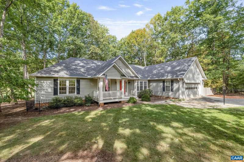 This well-maintained one-level home sits on a quiet cul-de-sac on a beautiful golf course in Lake Monticello. Offering 3 bedrooms, 2 full baths, and over 2,400 square feet of comfortable living space, the layout is bright, open, and practical. Features include a 2-car garage, low-maintenance exterior, and close proximity to the Bunker Bistro, golf course, and cart barn. Conveniently located near a gate, you'll enjoy quick access to shopping, healthcare, trusted local services, and restaurants. Recent updates provide peace of mind: pre-listing home inspection with repairs completed, new water heater, newer roof, recently serviced HVAC, and encapsulated crawl space. This quality-built home has been lovingly cared for and is move-in ready for its next owner to enjoy the best of golf-front living with all of Lake Monticello's amenities.
