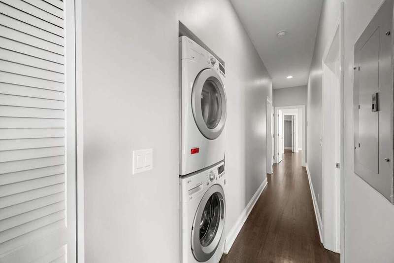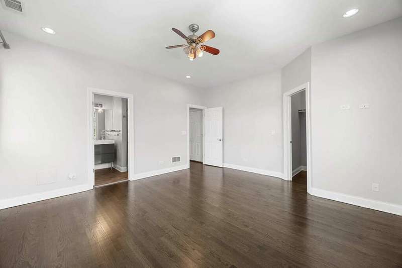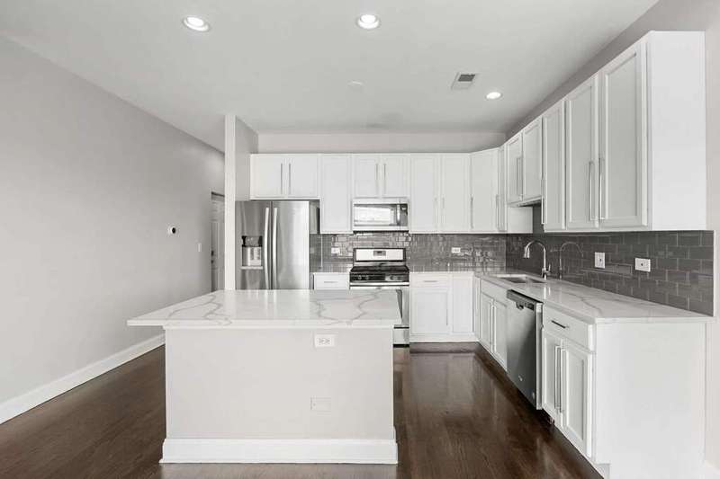 Spacious, stylish, and perfectly situated, welcome to your nearly 1,800 sq. ft. 3 bedroom, 2 bath dream home in the heart of vibrant Logan Square. Just three short blocks from the award-winning 606 Trail, you'll have easy access to one of Chicago's best spots for biking, jogging, or leisurely weekend strolls. The open-concept kitchen is a showstopper, complete with stainless steel appliances, gleaming quartz countertops, a chic glass tile backsplash, and premium Grohe fixtures. It flows seamlessly into the dining and living areas, making it perfect for entertaining friends or keeping an eye on the action while you cook. Your private primary suite feels like a retreat, featuring a generous walk-in closet, a spa-inspired master bath with a relaxing jacuzzi tub, and a separate glass-enclosed shower. Sleek vanities offer ample storage for all your essentials, keeping your space clutter-free. Rich mocha hardwood floors add warmth, while designer lighting and fresh custom paint create an inviting, polished atmosphere. A front-load washer and dryer, abundant closet space, and an included parking spot complete this move in ready home!