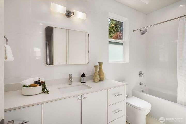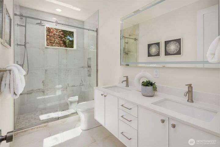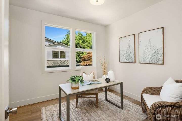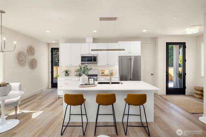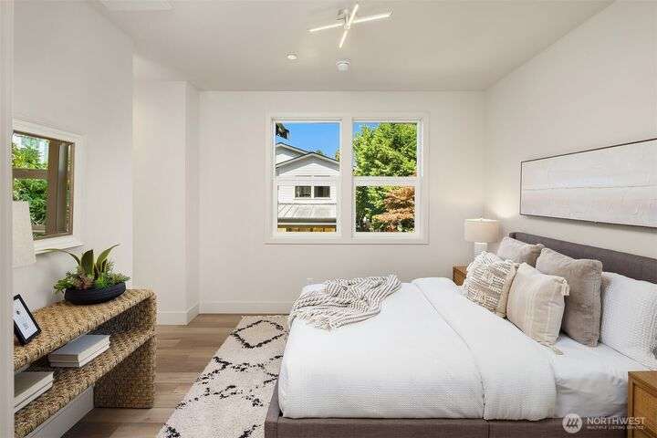 Welcome to this new construction cottage in coveted West of Market. Light-filled main level features open kitchen, dining, and living with fireplace and sliders to a covered patio and fenced yard—perfect for indoor/outdoor living. Kitchen shines with gas range and quartz counters. Upstairs offers a serene primary suite with luxurious bath & WIC. Secondary bedroom includes walk in closet. Full bath and laundry complete this thoughtfully-appointed home. Enjoy proximity to Lake Washington, Waverly Beach Park, and downtown Kirkland. Off-street parking provides peace of mind at the end of the day.