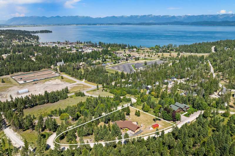 Beautiful Lakeside home with views of Flathead Lake. Perched just above town on a north facing hillside, this well-appointed 5Br/5Ba home sits on just under 2 acres with the perfect balance of privacy and access to Lakeside amenities. The living room is truly the heart of this home, featuring a fireplace that serves as a warm focal point, while the high and vaulted ceilings amplify the sense of spaciousness; the room also features built-in shelves and a beamed ceiling, adding character and architectural interest. The kitchen presents a culinary haven, complete with stone countertops and a backsplash that adds a touch of elegance; a large kitchen island with an island range hood and stovetop offers abundant space for meal preparation and casual dining at the kitchen bar, while the double oven makes it easy to host feasts. Sit out on the oversized deck and enjoy views of Flathead Lake and the mountains beyond.