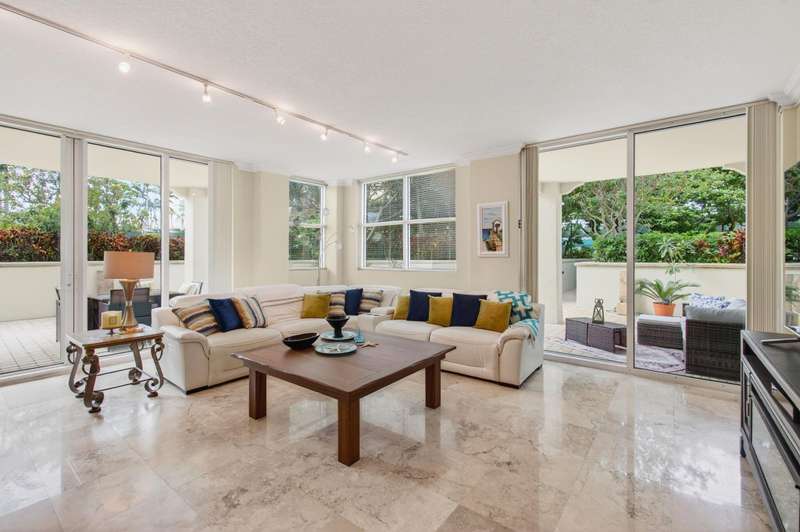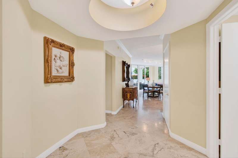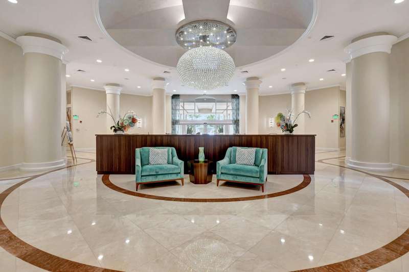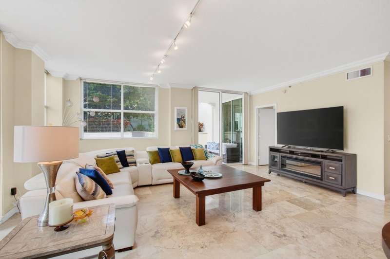 Live the resort life every day in this stunning first-floor corner unit with large lanai, great for entertaining. This first floor Condo offers 2 bedrooms, 2 bathroom plus a den is accentuated by gleaming marble floors that flow throughout the home, from the elegant living space to the den, providing a seamless and luxurious feel. Relax and unwind on the large, wrap-around balcony with serene garden views and direct access to the pool and tennis courts. The spacious primary bedroom features a spa-like en-suite bath with an oversized whirlpool tub, creating the perfect retreat at the end of the day. A convenient in-unit laundry room adds to the comfort and practicality of this home. Beyond your front door, a world of desirable amenities awaits.