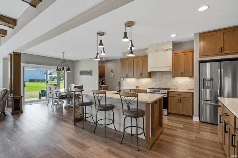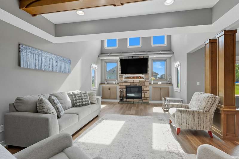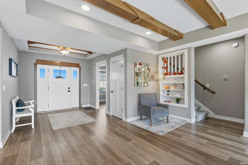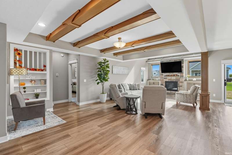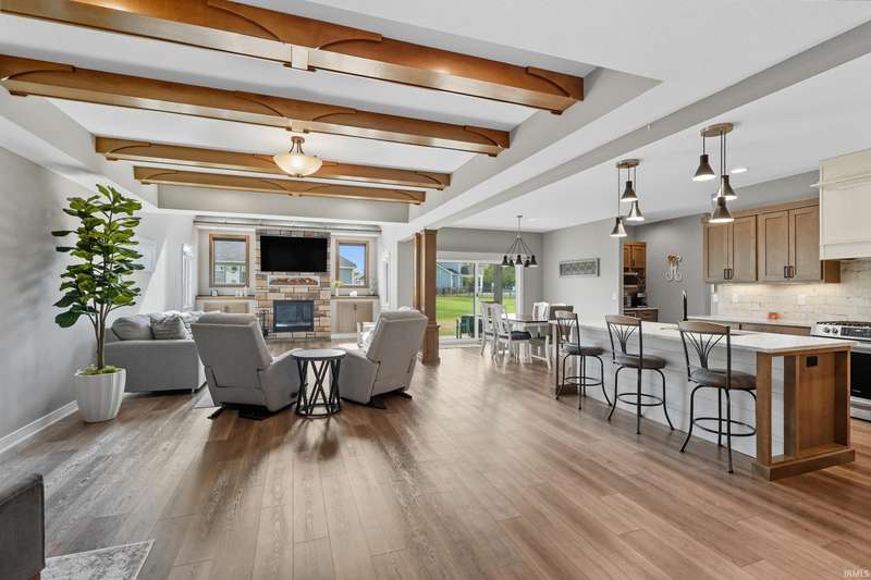 Welcome to this stunning 4-bedroom, 3.5-bath home offering a perfect blend of style, space, and function. Designed with a desirable split floorplan, the main-level primary suite features a spacious en suite bath and a walk-in closet, providing a private retreat. The heart of the home boasts an open-concept layout with gorgeous wood beams in the family room, creating warmth and character. The modern kitchen flows seamlessly into the dining and living areas—perfect for entertaining or family gatherings. Two additional bedrooms and a full bath are located on the opposite side of the main floor, offering privacy and flexibility. Upstairs, you’ll find a large loft, an additional 4th bedroom, and a full bath. Enjoy upgrades like new electronic window treatments, a dedicated home office, and a spacious 3-car garage for all your storage needs. Located in a quiet and desirable neighborhood, this home combines comfort, functionality, and upscale finishes—ready for you to move in and enjoy.