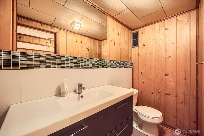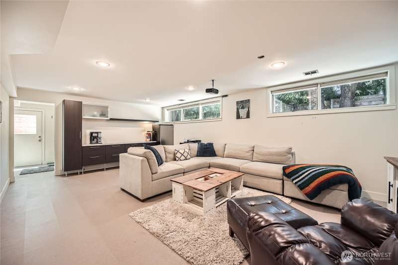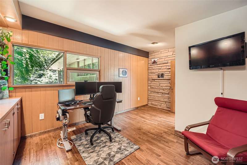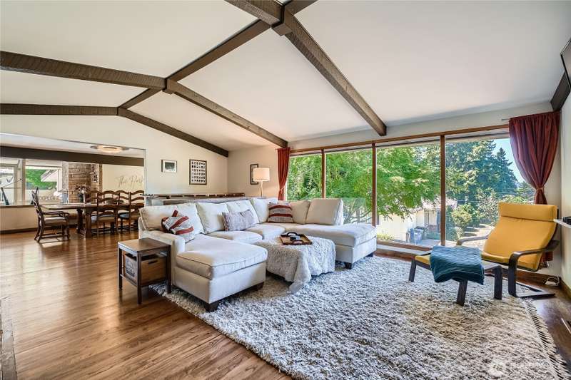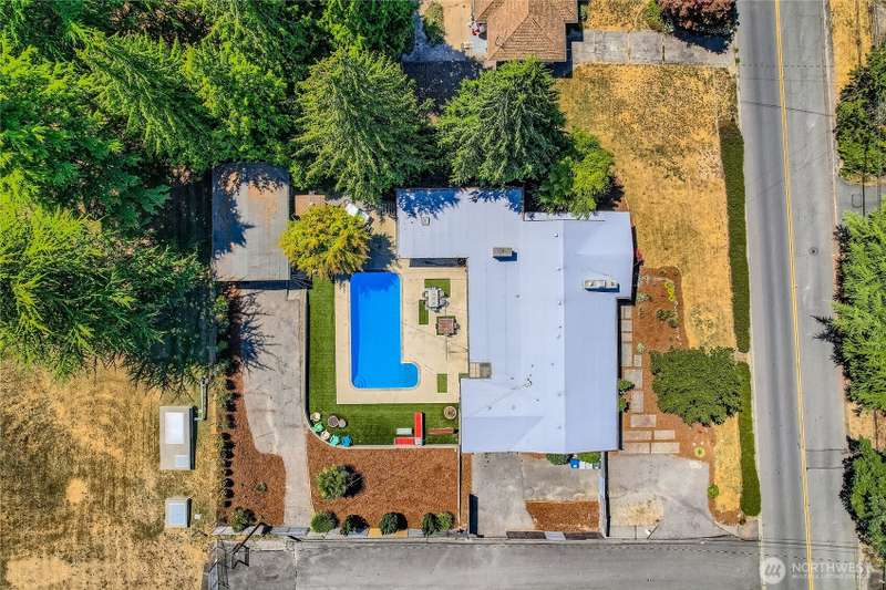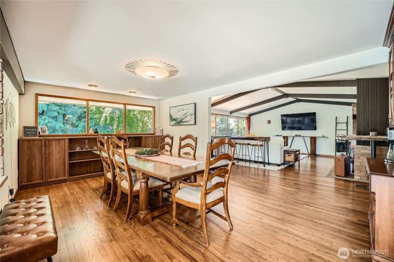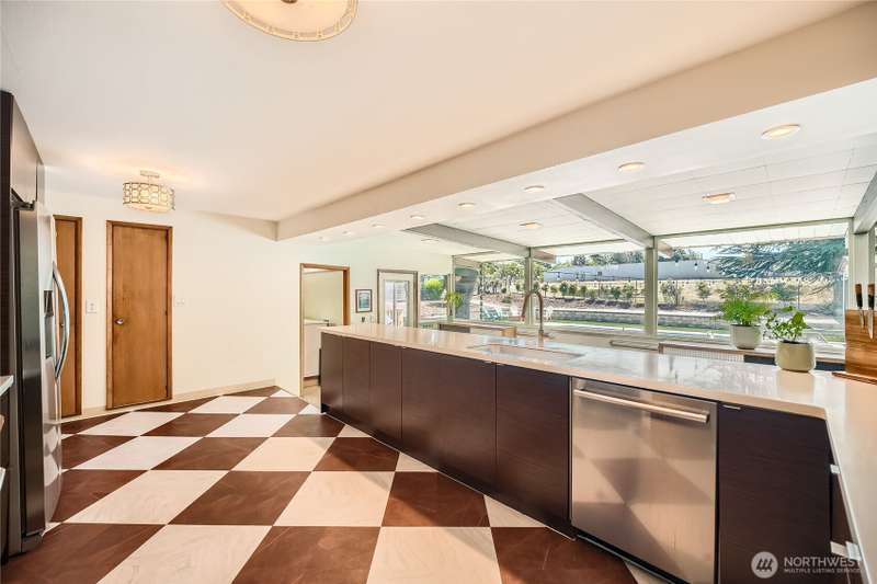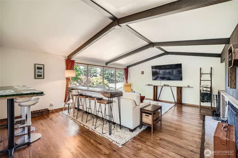 Stunning modern mid-century home with timeless style & a backyard oasis! This light-filled residence features clean lines, large windows, & warm wood tones throughout. Spacious main-level living areas flow effortlessly—perfect for entertaining or everyday life. The kitchen opens directly to the patio & pool area, creating seamless indoor-outdoor living. The daylight basement offers incredible flexibility with a bedroom, workout room, entertainment room, & ¾ bath ideal for guests, hobbies, or multi-generational living w/separate entry. Enjoy your private retreat with an in-ground pool, expansive patio, & fully fenced yard. New furnace 2024. Located in a quiet, established Kent neighborhood near parks, shopping, schools, & 167. A rare find!
