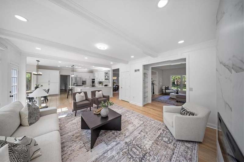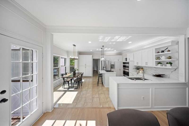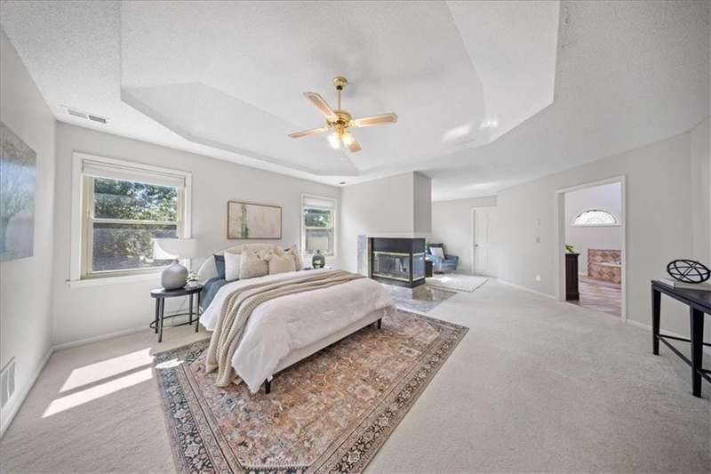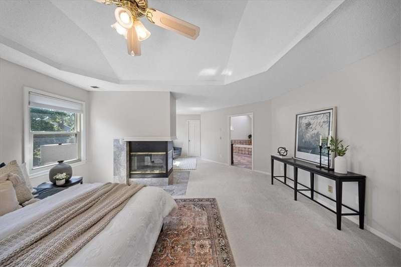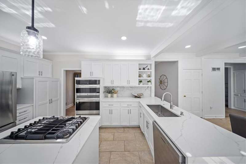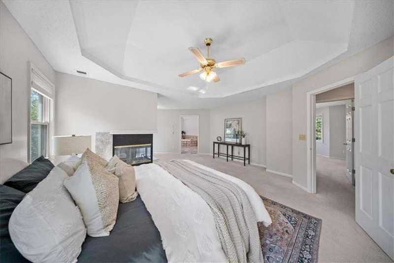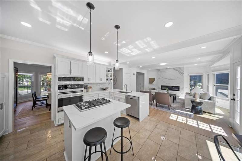 This meticulously maintained home reflects true pride of ownership!Enjoy new exterior and interior paint, the fully remodeled kitchen is a true showstopper, featuring quartz countertops, stainless steel appliances, a gas cooktop, and ample cabinetry. Off the kitchen you'll find an expanded patio and deck overlooking a gorgeous yard. The first floor features stunning hardwood floors just installed. Additional upgrades include triple pane Anderson windows, a newer roof, newer water heater, and stylish new light fixtures. Upstairs you'll find a spacious primary bedroom with a fireplace, sitting nook, an oversized bathroom and two generous closets. Two other bedrooms share a Jack and Jill bath, and the third has its own private ensuite. The daylight lower level is perfect for entertaining or everyday living, complete with brand-new carpet and a convenient half bath. Located in the award-winning Blue Valley School District and just minutes from Highway 69 and Bluhawk, Overland Parks groundbreaking retail and entertainment destination. Around the corner, you'll also find Kingston Lake Park, a 21.5-acre community park with a large lake and plenty of space to enjoy the outdoors.