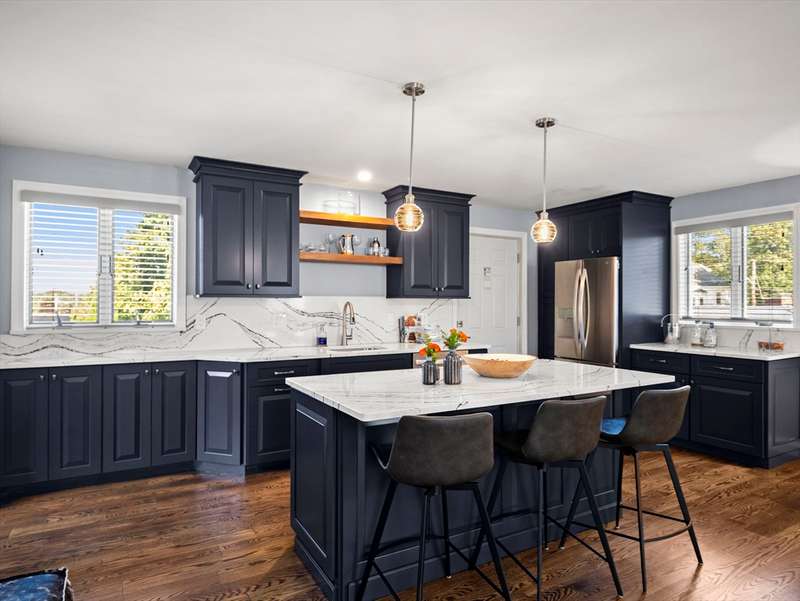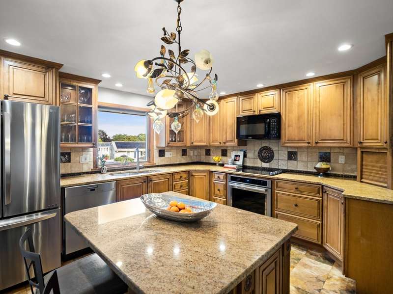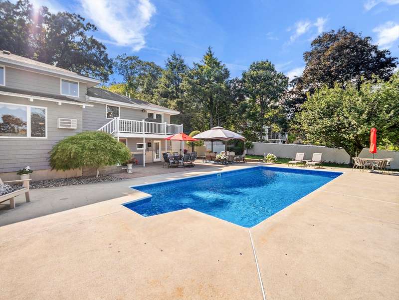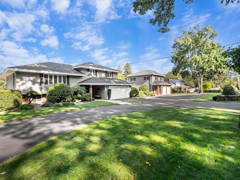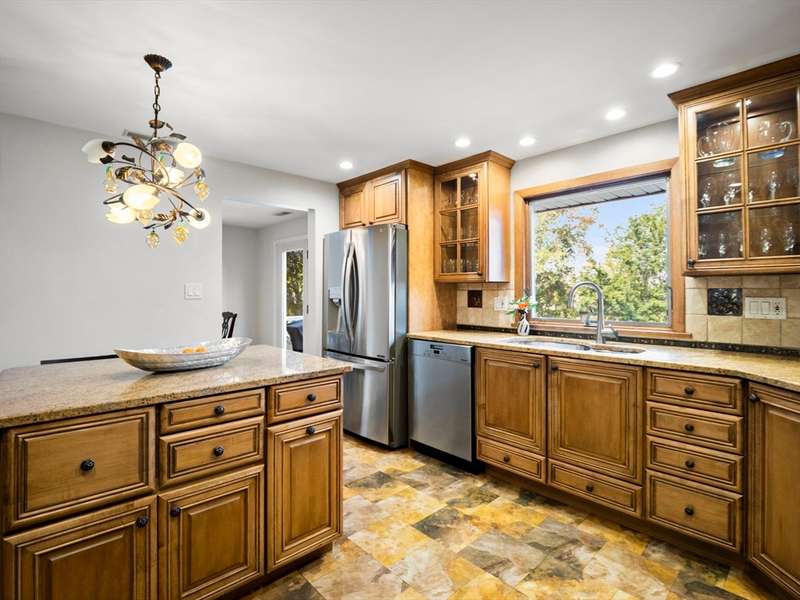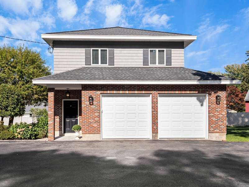 RARE OFFERING WITH PRIVATE DETACHED GUEST HOUSE! Discover this unique property featuring a, detached guest home w/ its own kitchen, LR, & bath perfect for guests, or a private office. The oversized two-car heated garage beneath offers both convenience and versatility, while the stunning living space above feels like a private retreat. The main multi-level home impresses w/ an open-concept design, multiple living areas, 3 bedrooms, & 2.5 baths. Beautiful custom shutters, hardwood floors,& a LR w/ wet bar, fridge & dining area adding a touch of luxury. A second full kitchen enhances everyday function & provides seamless access when entertaining by the pool. Outdoors, the property becomes a true backyard oasis, offering a heated inground pool, pool shed, lush vegetable garden, additional storage shed, & manicured lawns accented by stones & walkways. Every detail has been thoughtfully maintained. DON'T MISS THIS RARE OPPORTUNITY-HOMES LIKE THIS ARE SELDOM OFFERED!
