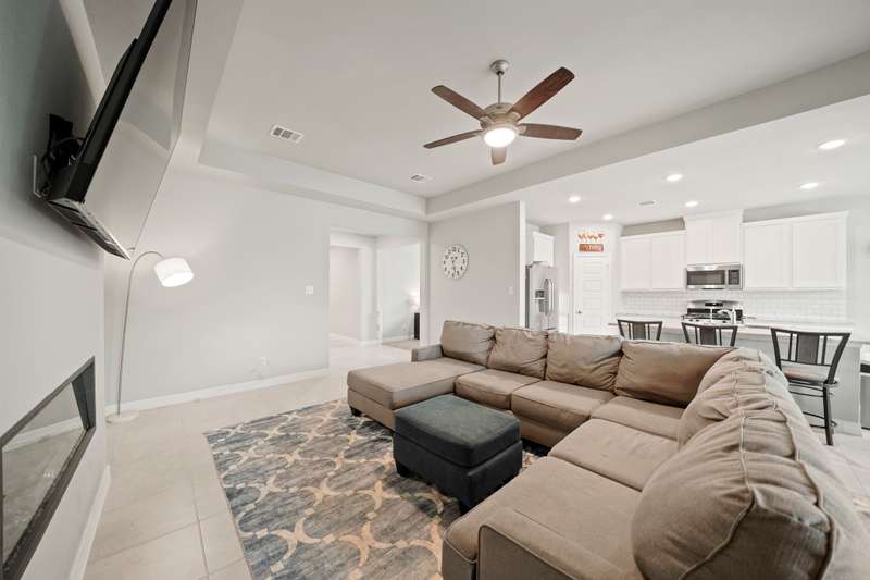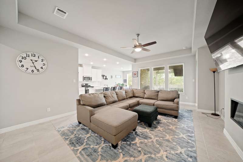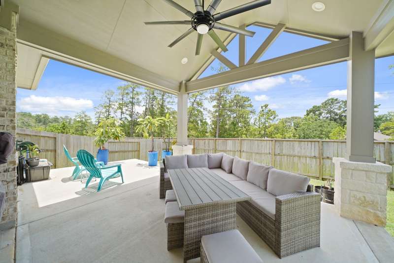 Welcome to this charming 4 bed, 2 bath home built by Tri Pointe Homes. With an large covered back patio and no back neighbors, enjoy the quiet relaxation or grill and watch your outdoor TV. Inside, you'll find a cozy fireplace, a spacious primary suite, and a versatile formal dining area that can double as an office space. The open kitchen features granite counters and an island, ideal for preparing meals and entertaining guests. With tile floors, large windows, and high ceilings, this home exudes a sense of elegance and comfort, and is move-in ready. Washer, dryer, and refrigerator are included! Located off 105 and with access to parks nearby, this property offers the perfect blend of convenience and tranquility.