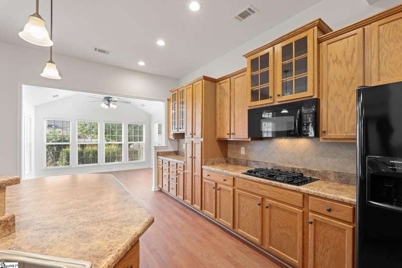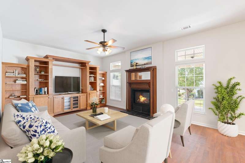 ** $10K Price Improvement and a Brand New Roof and Brand New HVAC with Transferrable Warranty! ** Enjoy low-maintenance living with lawn care included and a primary suite on the main level in the heart of Five Forks - welcome to 7 Bamburgh Brae Court. This one-owner home offers 4 bedrooms (or 3 plus a flex room), 2 bathrooms, and thoughtful upgrades throughout, with all appliances included. Tucked away on a quiet cul-de-sac, the home invites you in through a charming covered front porch and into the foyer, where luxury vinyl plank floors flow throughout the entire main level. The open yet split floor plan strikes the perfect balance of connection and privacy. To the right, a formal dining room leads into the gourmet kitchen, complete with tons of custom cabinetry, double ovens, a gas cooktop, and a generous peninsula with seating. The kitchen opens to a spacious living room featuring built-ins, a gas fireplace, and a one-of-a-kind antique salvaged mantle. Just beyond, the bright sunroom offers walls of windows overlooking the private backyard and covered patio. The primary suite enjoys its own wing of the home and features a walk-in closet along with a beautifully remodeled en suite bath, highlighted by a large walk-in shower with pull-down seat and a dual vanity. Two additional bedrooms with oversized closets and a full bath are located on the opposite side of the home, ideal for family or guests. Upstairs, a large flex room provides endless options - an additional bedroom, office, or hobby space. Practical touches include a main-level laundry room with a rough-in for a sink and a spacious two-car garage with plenty of storage. Outdoors, you’ll find a large covered patio perfect for evening relaxation, plus a second patio with a dedicated outlet ready for a hot tub or spa, all tucked behind a private fenced area. This low-maintenance neighborhood includes lawn and landscaping service along with wonderful amenities including a community pool, clubhouse, sidewalks, and more. 7 Bamburgh Brae Court is a rare gem - combining convenience, comfort, and charm. Schedule your showing today! Contact Ashley Steigerwald with Wilson Associates at 864-907-0601 or email ashley@wilsonassociates.net.
