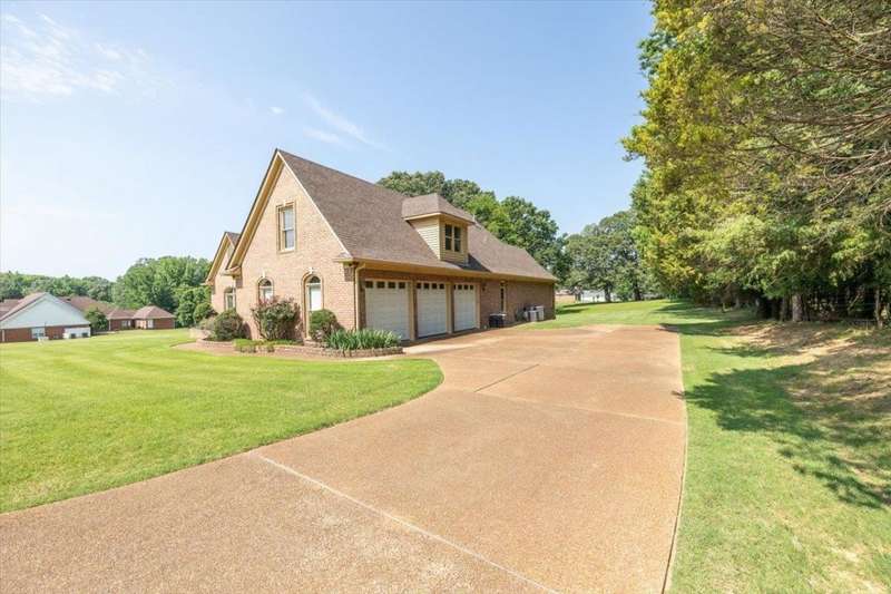Great Listing in Eads - Fayette County! Welcome to 365 Fair Meadows Ln in Hickory Withe Woods Subdivision. A stunning 4BR/4BA home on 1.42 professionally landscaped acres in a beautiful subdivision just inside Fayette Co. Low Fayette County taxes. All 4 bedrooms and 3 baths including a 2nd ensuite are on the main level. Soaring Ceilings. Bonus room & full bath upstairs. Enjoy an open kitchen with lots of cabinet space. Breakfast area & hearth room, separate dining room and large great room along with a covered back porch. Natural light fills the home through the transom windows. Beautiful hardwood floors & tile in main living areas. New roof in 2023. Large walk-in attic, Plenty of closets, and a 3-car attached garage. Very well kept and maintained. Shared pond access and peaceful setting make this one a must-see!