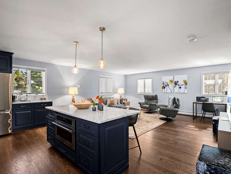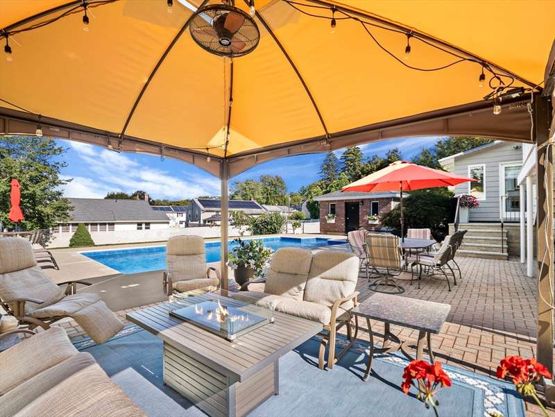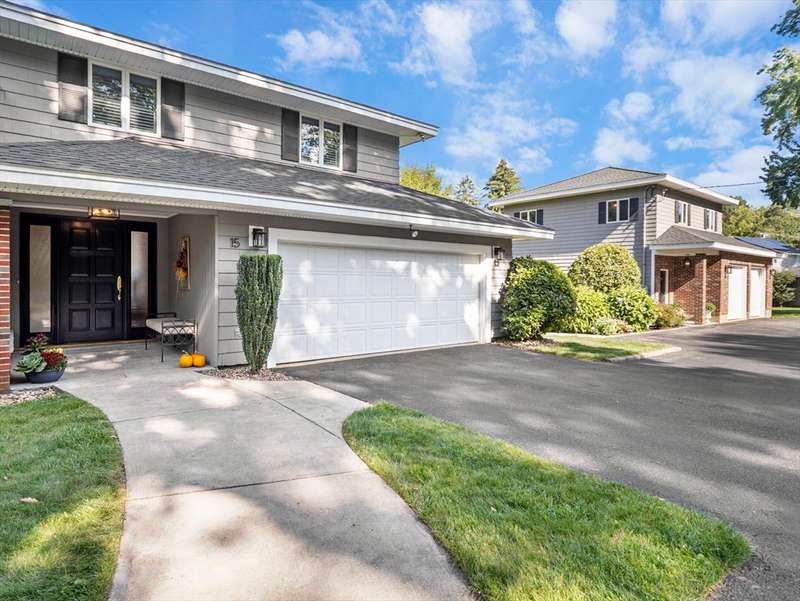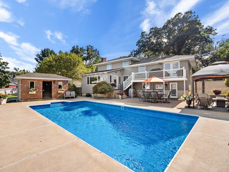 RARE OFFERING WITH PRIVATE DETACHED GUEST HOUSE! Discover this unique property featuring a, detached guest home w/ its own kitchen, LR, & bath perfect for guests, or a private office. The oversized two-car heated garage beneath offers both convenience and versatility, while the stunning living space above feels like a private retreat. The main multi-level home impresses w/ an open-concept design, multiple living areas, 3 bedrooms, & 2.5 baths. Beautiful custom shutters, hardwood floors,& a LR w/ wet bar, fridge & dining area adding a touch of luxury. A second full kitchen enhances everyday function & provides seamless access when entertaining by the pool. Outdoors, the property becomes a true backyard oasis, offering a heated inground pool, pool shed, lush vegetable garden, additional storage shed, & manicured lawns accented by stones & walkways. Every detail has been thoughtfully maintained. DON'T MISS THIS RARE OPPORTUNITY-HOMES LIKE THIS ARE SELDOM OFFERED!