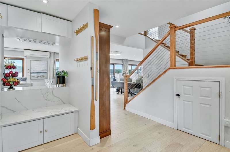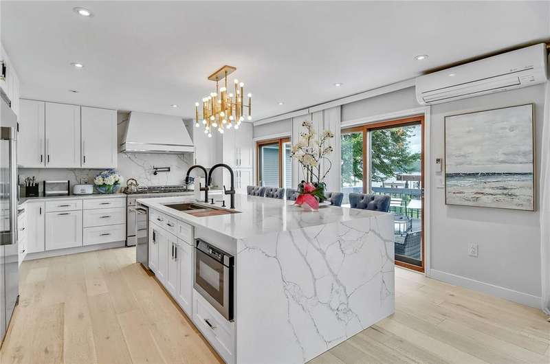 Completely Renovated Lakeside Gem / 80' Lake Frontage / Chef's Kitchen / Fully Renovated Fall 2023!Welcome to your newly transformed dream lakefront retreat! This stunning, completely renovated home?reimagined in Fall 2023?offers 80 feet of premium lake frontage and breathtaking water views. Every inch of the home has been professionally redesigned with luxurious, high-end materials, delivering a fresh and modern aesthetic that blends elegance and comfort.The chef's kitchen is a masterpiece, featuring top-tier appliances, custom cabinetry, and sophisticated finishes perfect for both culinary adventures and entertaining guests. The open-concept layout fills the home with natural light, effortlessly connecting the indoor living spaces with the outdoor waterfront.Step outside to your private lakeside sanctuary, designed for relaxation and leisure, or entertain in style while enjoying the serene views. A boat hoist is already installed?just bring your watercraft and enjoy the lake right away!This completely renovated lakeside haven is a rare find?luxury, style, and functionality come together in perfect harmony. Don't miss your chance to experience it firsthand!
