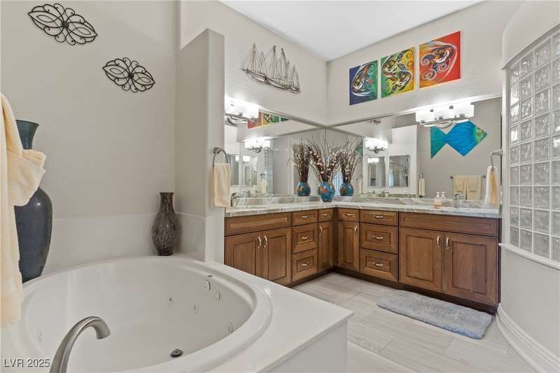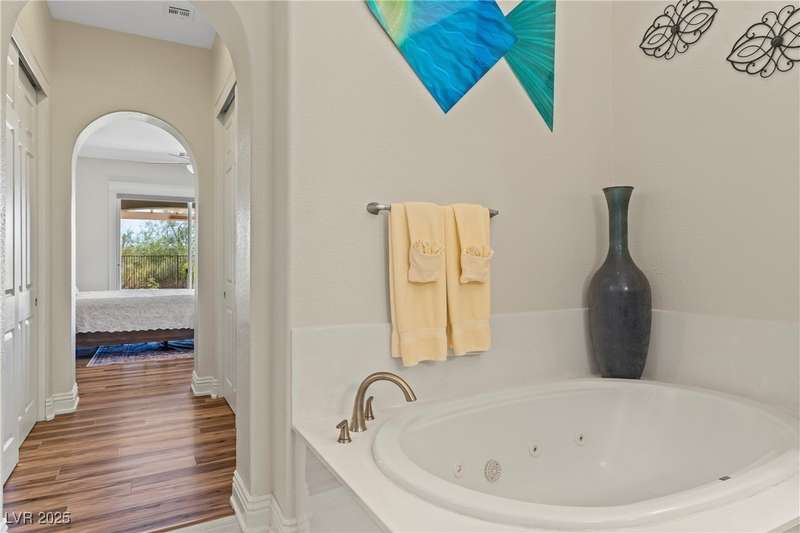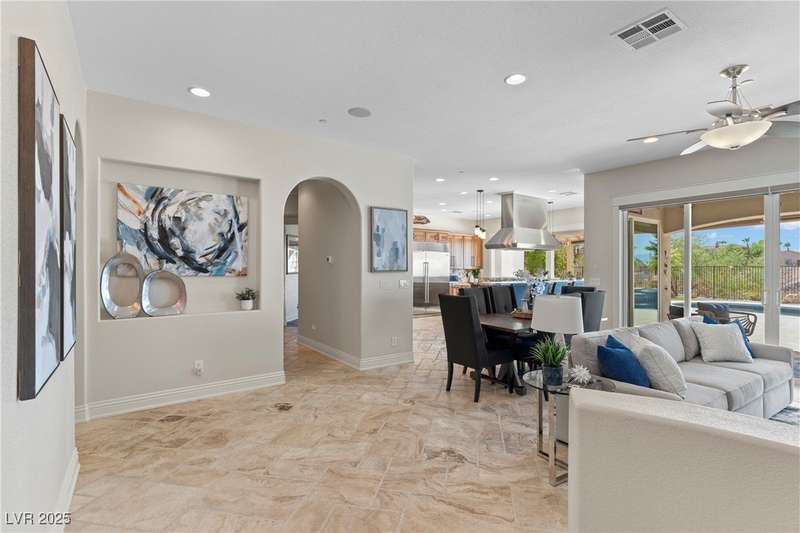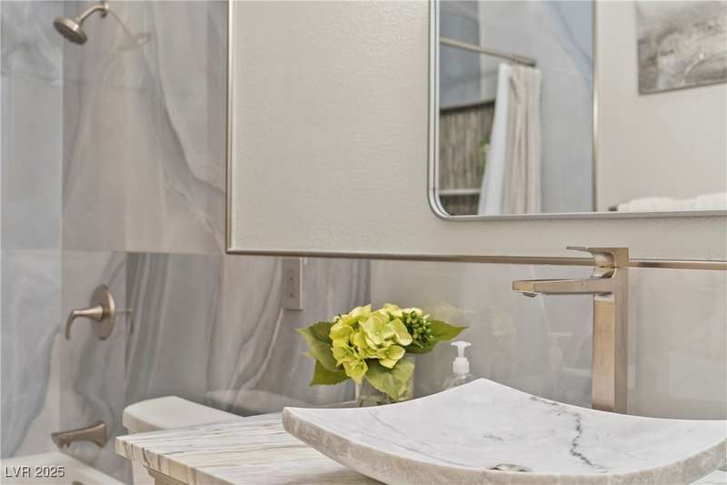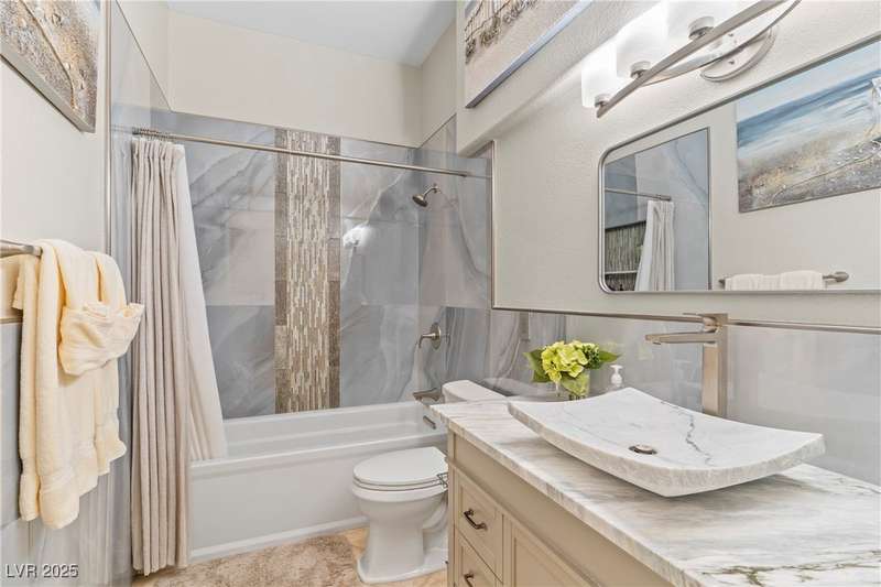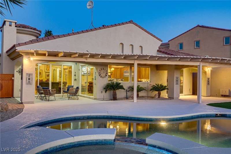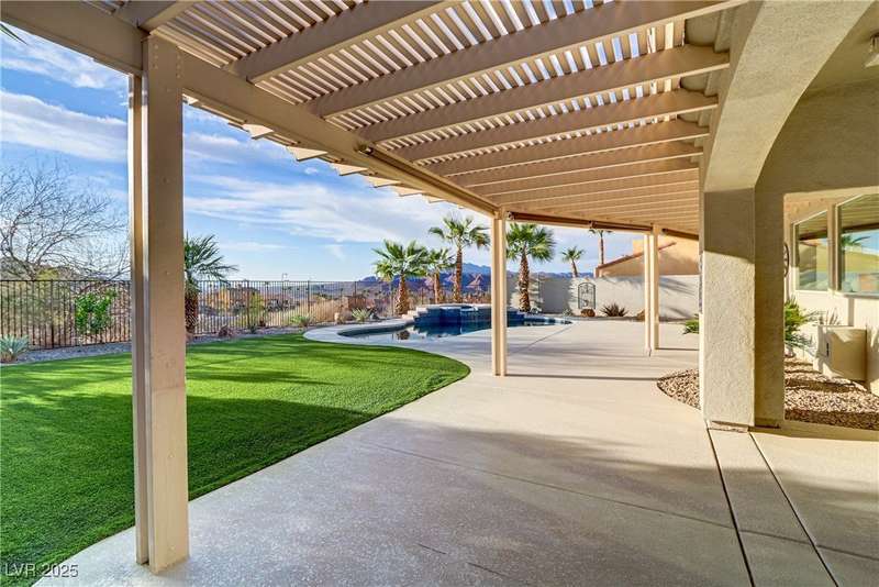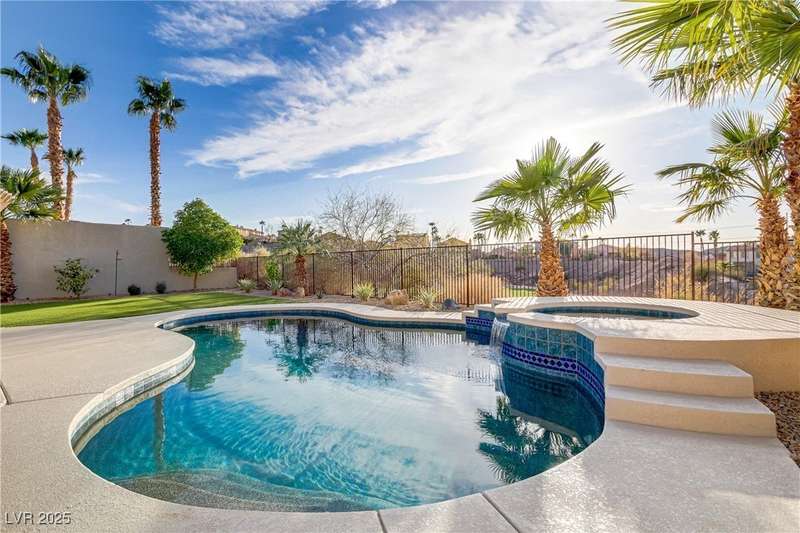 Welcome to resort-style living in the exclusive Lake Las Vegas gated community, where this fully renovated home backs to the golf course fairway, offering breathtaking views of the course, mountains & even some city views. Boasting 2,389 sq ft, this unique residence features an open floor plan flooded with natural light, creating a bright & airy atmosphere. The grand entry, complete w/ a beautiful foyer, sets the tone for this home, which has been meticulously remodeled with designer & luxury finishes throughout. Offering 3 spacious bedrooms, one of which is an on-suite/casita style w/ a private secondary room and full bath, perfect for guests or multi-generational living. The home also features high-end appliances, a cozy gas fireplace & elegant travertine tiles & stones throughout. Enjoy outdoor living w/ a sparkling saltwater pool/spa an enclosed private courtyard. Enjoy access to an exclusive sports club membership, elevating your resort-style experience.