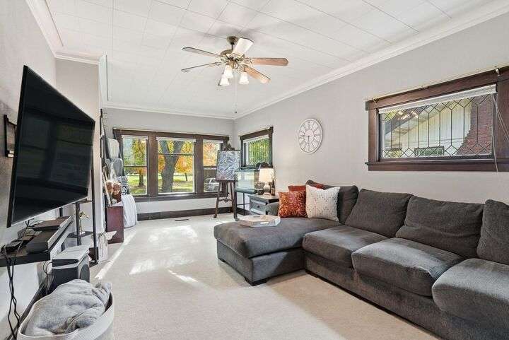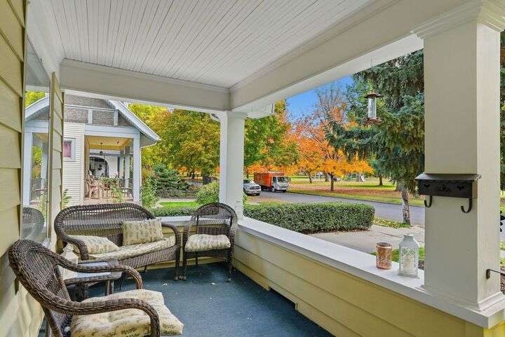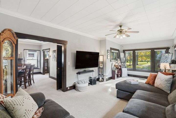 Remarkable is an understatement! This turn-of-the-century historical era home, nestled directly across the street from Corbin Park, has all the charm one could ask for. Functional floorplan with a primary bedroom on the main floor, large formal dining area with/ fireplace, office/den, spacious living area, 1 ½ Bathrooms, flowing kitchen, and a light & bright sun room. Upstairs consists of 2 more Bedrooms, 1 Bathroom, a private enclosed deck, in addition to a wonderful rooftop patio that overlooks Corbin Park! Downstairs provides ample storage in addition to a non-conforming Bedroom. Outside, the fully fenced/landscaped backyard has a patio area, water feature, and a detached 2-car garage with alley access. Enjoy all of the different BEAUTIFUL seasons Corbin Park has to offer, from your front porch!