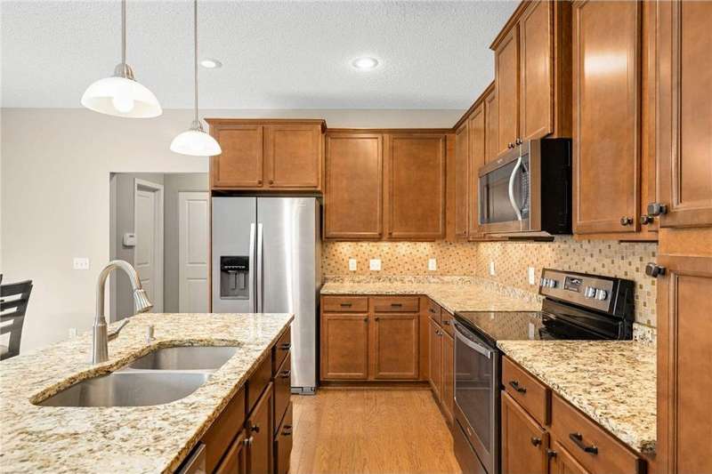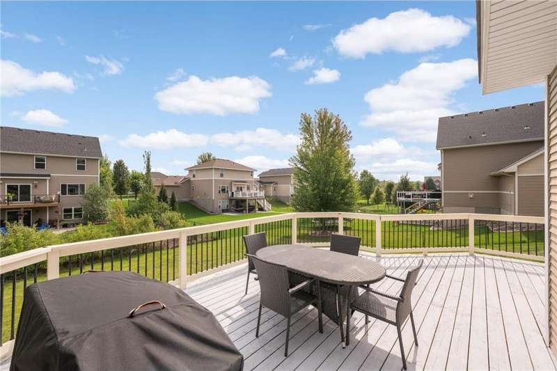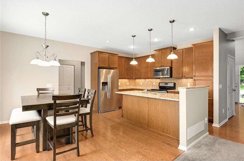 ***Multiple offers... highest and best offers due 12pm on Tuesday 9/23*** Stunning two-story home located in a sought-after Lakeville neighborhood within the highly acclaimed 196 school district. Step inside to an open-concept main level featuring a spacious kitchen with granite counters and stainless-steel appliances, both formal and informal dining areas and living room with gas fireplace. The upper level includes four generously sized bedrooms, including a private primary suite with vaulted ceiling, walk-in closet and private bath. The walkout lower level offers even more living space with a large family room, second gas fireplace, and wet bar—ideal for entertaining. Step outside to enjoy the deck overlooking a fully fenced backyard or unwind on the charming front porch. The 3-car garage provides ample room for vehicles, storage, and hobbies. Conveniently located near shopping, grocery stores, restaurants, parks and more - this home truly has it all. Welcome home!