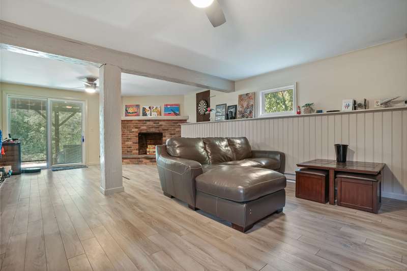 Welcome to 37 Dick Finn Road - A Move-In Ready Ranch on 1.11 acres! This beautifully maintained 4-bedroom, 3-bath ranch offers a spacious and versatile layout ideal for comfortable living and entertaining. Set on a peaceful lot with mature landscaping, this home combines privacy, functionality, and modern updates. Step inside to find a bright and welcoming main level featuring a kitchen with crisp white cabinetry, stainless steel appliances, and modern granite countertops. The adjacent dining room opens through sliding glass doors to a private deck-perfect for outdoor dining or relaxing in nature. The inviting living room centers around a cozy fireplace, creating a warm and welcoming space. The main level also features a generous primary suite complete with a walk-in closet and full bath. Two additional bedrooms and a full hall bath round out this floor. The finished lower level adds valuable living space with a spacious family room, an additional bedroom, full bath, and a laundry closet-ideal for guests, in-law , or a home office setup. Additional highlights include a 2-car garage, newer roof, propane furnace, central air conditioning, standby generator, and Commerical grade hot water heater-offering both peace of mind and energy efficiency. With its beautiful landscaping, well-cared-for interiors, and modern mechanicals, this property is truly move-in ready. Conveniently located close to town, schools, iking trails, town beach & Boat docks, and commuting routes.