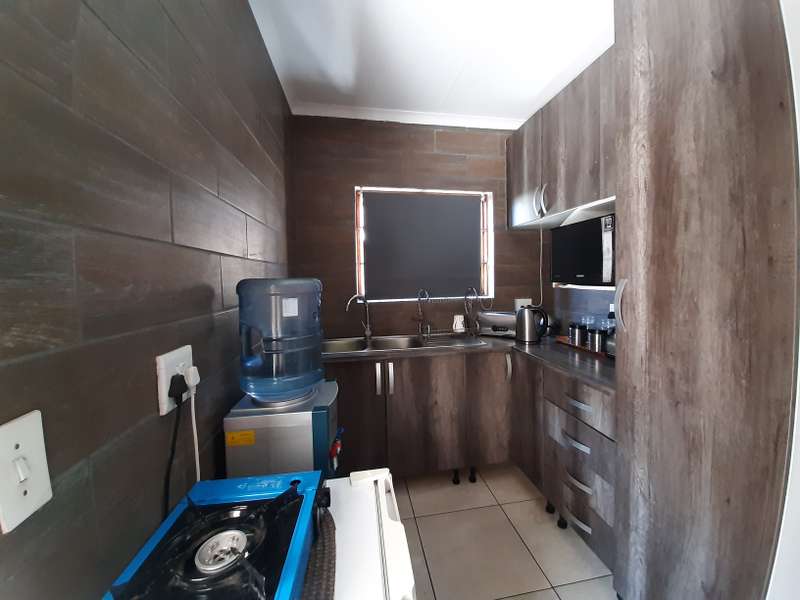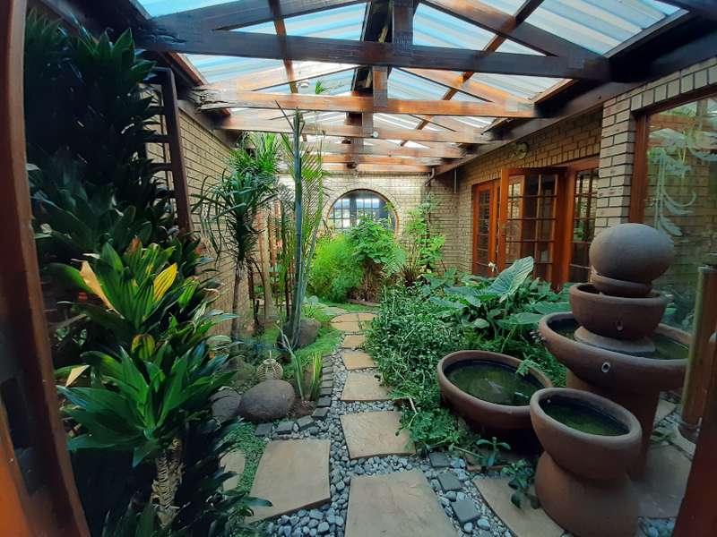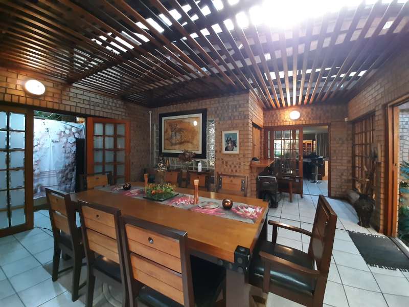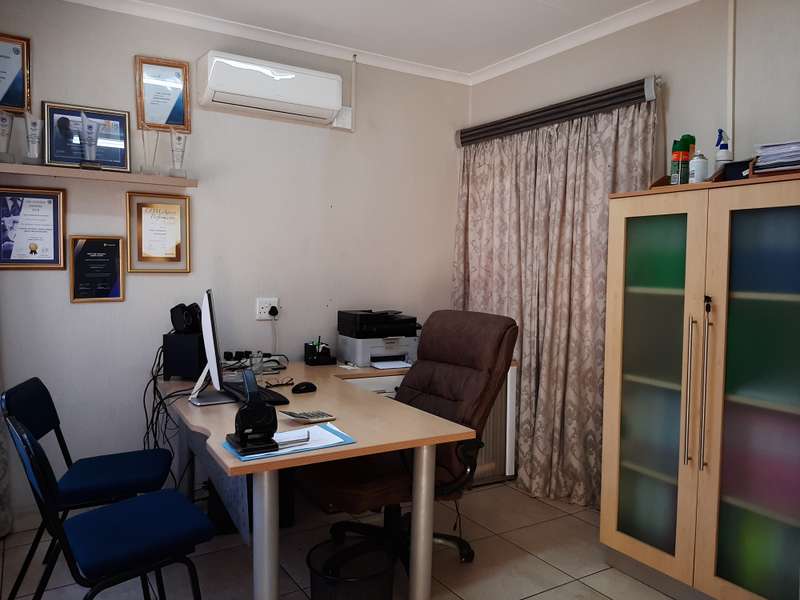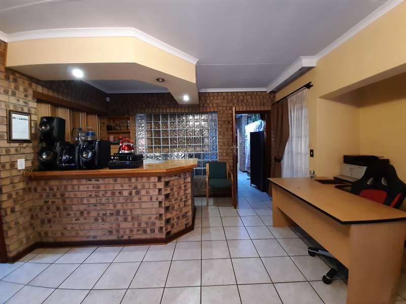 This is an exclusive, beautiful property that is situated close to Delmas Primary School and consists of an executive 6-bedroom house and an office building with 3 offices. The main house has 6 bedrooms, of which 2 have lofts, 5 bathrooms, a kitchen, a separate laundry room, a dining room, and 4 other living areas, of which one has a built-in fireplace, another a built-in bar, a lapa, and a swimming pool. The main bedroom has an on-suite bathroom and a big walk-in closet. In the middle of the house are the most beautiful indoor gardens that can be accessed from almost every room inside the house, which gives you that calming feeling. A double garage and a carport that can fit a caravan and vehicles. There is a single garage at the back that can be used for storage or converted into another room. A solar system with 12–18 solar panels, an inverter, batteries that power the office building, and all the lights. The office building has 1 executive office with air conditioning and two other big offices with a kitchen and bathroom. It can easily be converted into a big flat. There is a fully operational CCTV system with 16 cameras, an alarm system, and beams around the house. a 2500-liter water tank and pump.