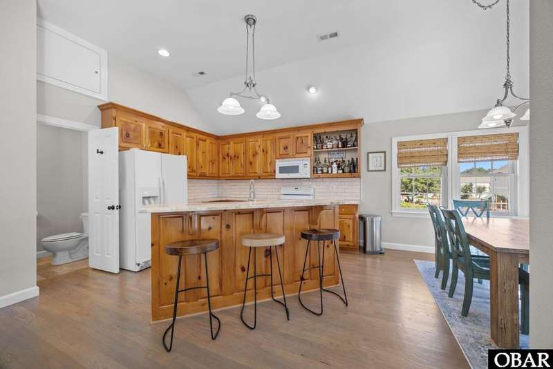 Welcome to this turn-key 3-bedroom, 2.5-bath home in the heart of Kill Devil Hills. Situated on a rare and expansive 12,500 sq ft lot, this beautifully maintained property offers not only space but incredible potential. Whether you are dreaming of a private pool, a serene backyard retreat, adding a guest house or an ADU, the possibilities here are truly endless! Inside, you'll find timeless hardwood floors, elegant granite countertops, and custom cabinetry throughout. Recent updates include new water heater (2025), fresh interior paint (2025), and new ground-level flooring (2024), complementing the home's functional layout and inviting atmosphere. The exterior features classic cedar shake siding, low-maintenance Azek composite decking and railings, and a professionally landscaped yard with irrigation. An impressive outdoor entertaining space with granite countertops is ideal for relaxed coastal gatherings. The property is offered fully furnished. All of this in a prime location near top restaurants, local shops and just minutes from the beaches of the Outer Banks. This is coastal living at its finest.Schedule your private showing today!