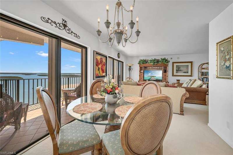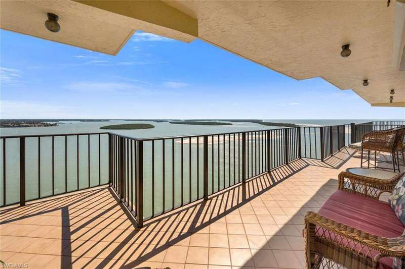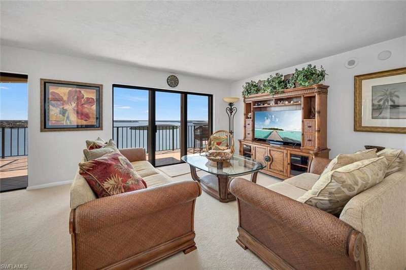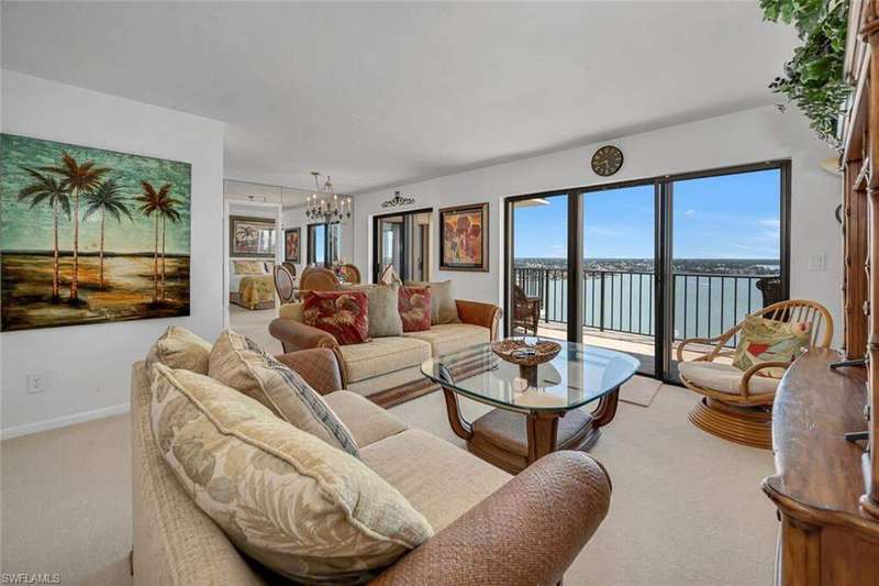 Welcome to Shipp's Landing - Marco Island's premier waterfront destination! This stunning 15th-floor residence in the highly desirable south-facing 24 stack offers breathtaking panoramic views of the Gulf of Mexico, Caxambas Pass, and the Ten Thousand Islands. Watch dolphins play and boats cruise by from your private, oversized balcony perched high above the sparkling waters. Step inside through the floor to ceiling glass doors and find a welcoming, turnkey-furnished home filled with warm, natural light and endless views. The extensive balcony, large living-dining area, and modern kitchen with considerable countertop and cabinet space make this home in the sky the perfect place for hosting your family and friends. The primary suite is a true retreat with balcony access, sweeping water views, and a large ensuite bathroom featuring a double vanity and walk-in shower. Guests will feel at home in the comfortable second bedroom with adjacent full guest bath. Additional features include in-home laundry room, a large storage closet off the hallway, and covered parking. Shipp's Landing is a private community renowned for its resort-style amenities including three pools, a spa, a state-of-the-art fitness center, tennis and pickleball courts, boat docks, a private beach area with kayak launch and storage, fishing pier, bocce, shuffleboard, and clubhouses - all nestled along beautifully landscaped grounds. Whether you're seeking a full-time residence, a seasonal getaway, or a smart investment opportunity, this residence offers the perfect blend of luxury, comfort, and unbeatable island lifestyle. Move-in ready and waiting for you to make it your own! Don't miss this rare opportunity to own one of the best vantage points Marco Island has to offer. Schedule your private showing today! Estate sale.