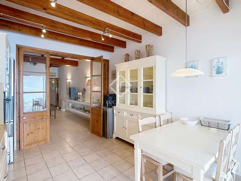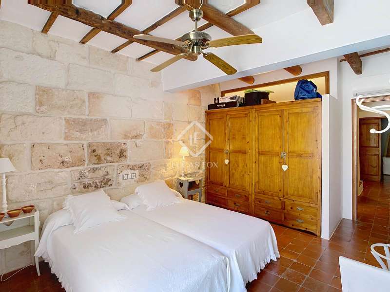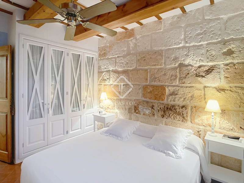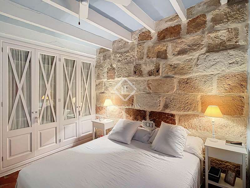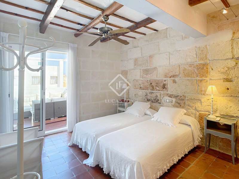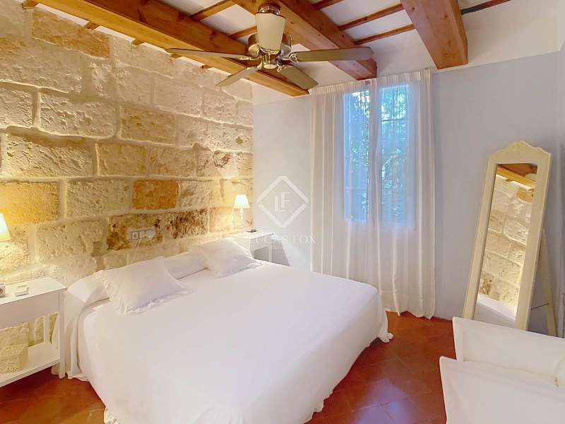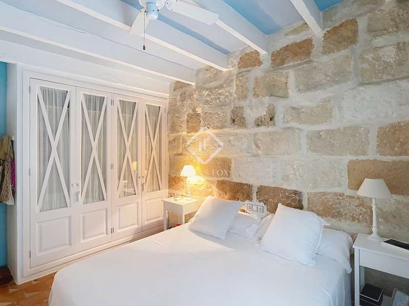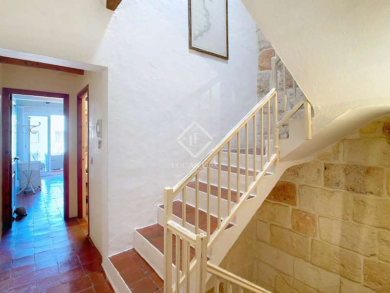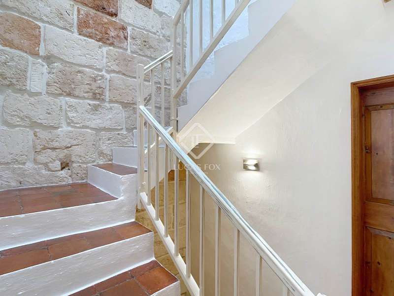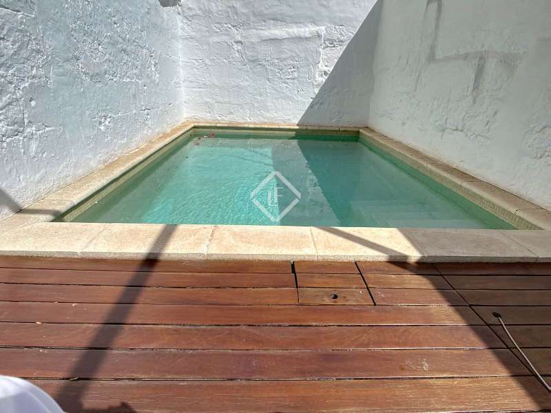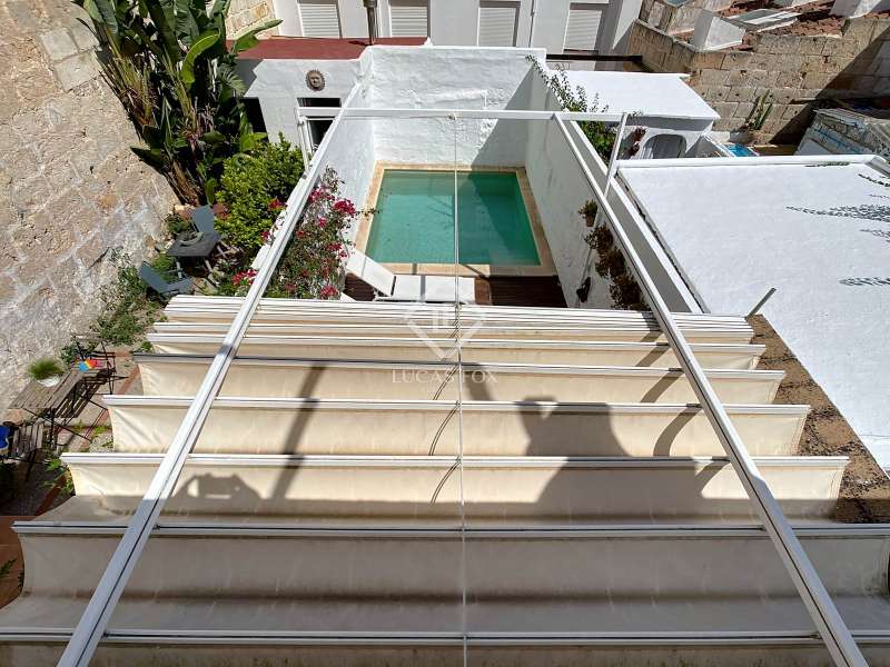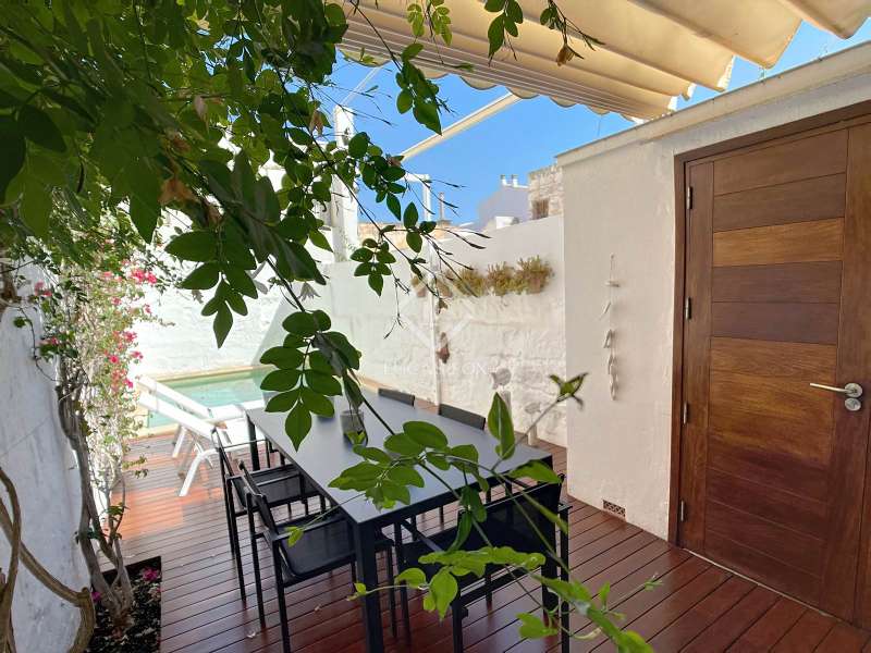 Lucas Fox presents this wonderful 181 m² house with a 5.8 m² patio and swimming pool, in one of the best areas of Ciutadella de Menorca. The property is spread over three floors. The entrance welcomes us with a spacious entrance hall that connects to a small hall with a storage room under the stairs. From here we find a bathroom and, further on, the bright living room with high ceilings and exposed wooden beams. The living room connects to the spacious kitchen- dining room with large windows that flood the entire room with natural light and offer access to the fantastic patio. The patio features a beautiful pool, teak flooring, a retractable awning, a laundry room room, and one wall is decorated with bougainvillea and climbing jasmine. From the hall, a comfortable staircase leads to the first floor, where we find two double bedrooms with built-in wardrobes, one of them with access to a cozy chill-out terrace also with a retractable awning, ideal for relaxing outdoors. There is also a full bathroom with a skylight for more natural light. On the second floor, we have two more double bedrooms with built-in wardrobes, one of them with access to a balcony, and a full bathroom also with a skylight. Another skylight is built into the ceiling of the second floor , providing natural light to the entire staircase. The house was renovated with high-quality materials and retains typical Menorcan details such as arches, sandstone walls throughout most of the house, and exposed wooden beams, some of them lacquered white. It has hot/cold split air conditioning units and ceiling fans in most rooms. Without a doubt, this is an ideal property for year-round living or spending time with family and/or friends. Contact us for more information or to arrange a viewing.