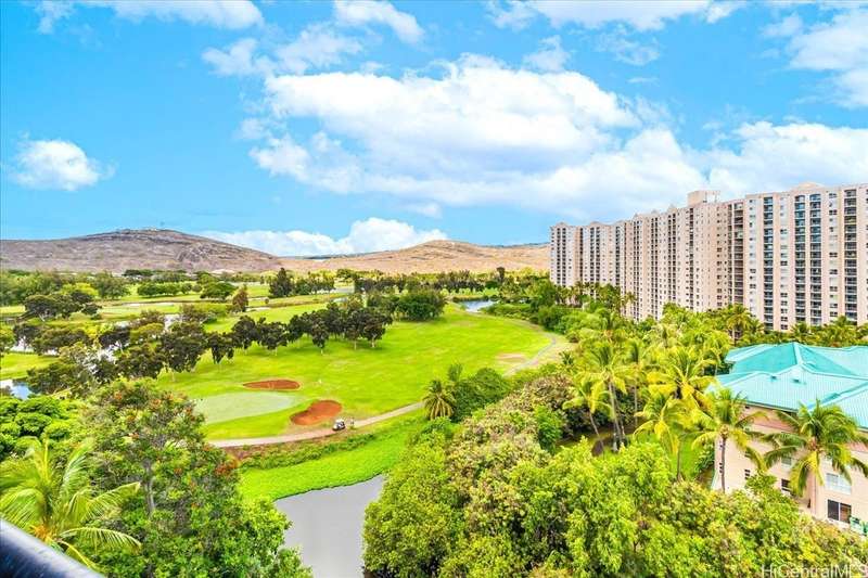 This bright and breezy corner unit features an open floorplan with relaxing trade winds, plus panoramic golf and mountain views. Large lanai! In-unit washer and dryer. Remodeled kitchen, new Dishwasher. Unit comes with two parking stalls. Building equipped with fire sprinklers and is pet friendly. Ideally situated near freeway access, bus lines, shopping, dining, downtown, airport, schools, parks, and more. Resort-style amenities include pool, sauna, BBQ areas, meeting room, and fitness center. 24-hour security, resident manager. Plenty of guest parking available!