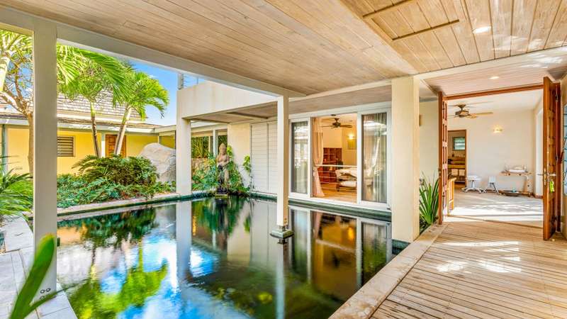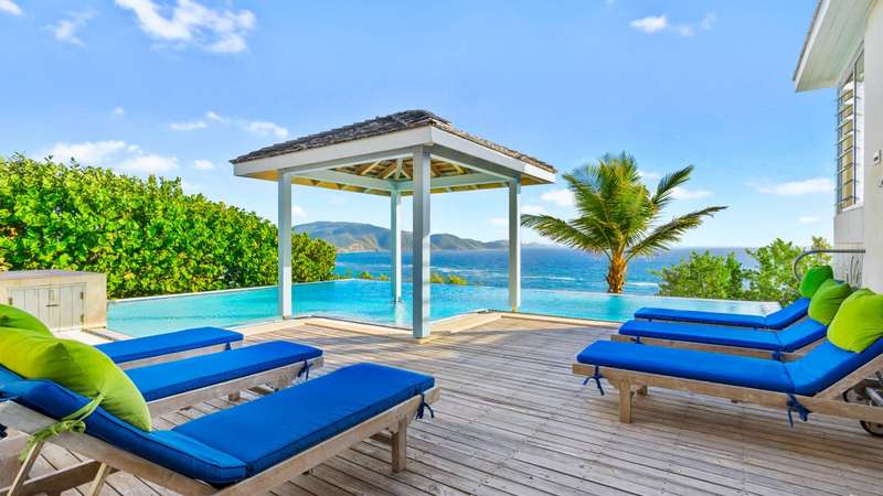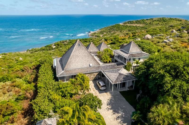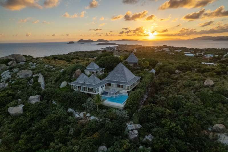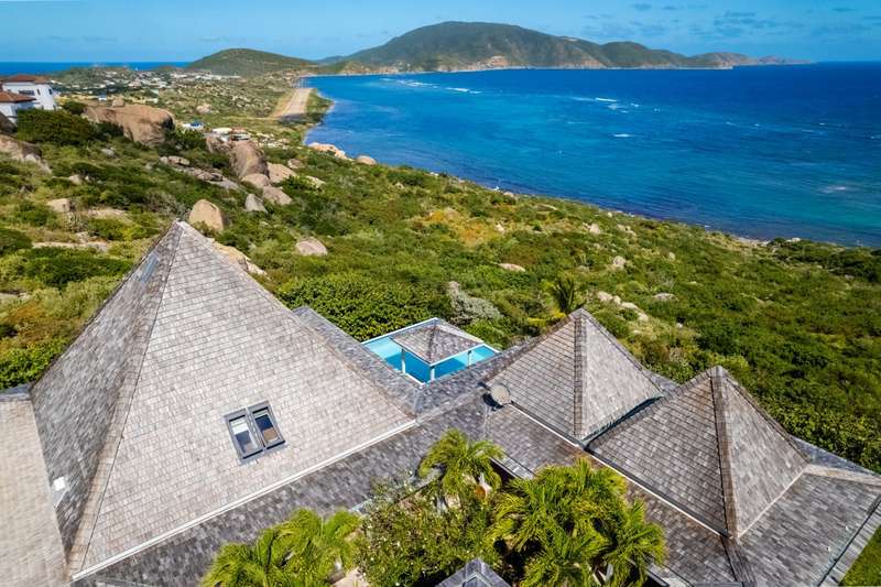 Virtual Tour of Red Rock Villa Masterfully designed, and robustly constructed, this offering exists in harmony with the unique landscape of Virgin Gorda. Red Rock Villa is nestled into the red boulders of Coppermine Ridge and is a magnificent homage to nature. It is built unobtrusively into one of the highest points of The Valley and enjoys views of both the Atlantic Ocean to its east and the Caribbean Sea to its west. This allows for enjoyment of both sunrise and sunset over neighbouring islands. Red Rock Villa is graced by trade winds and enjoys the tranquility of its secluded setting.