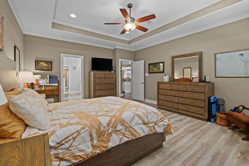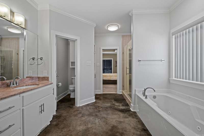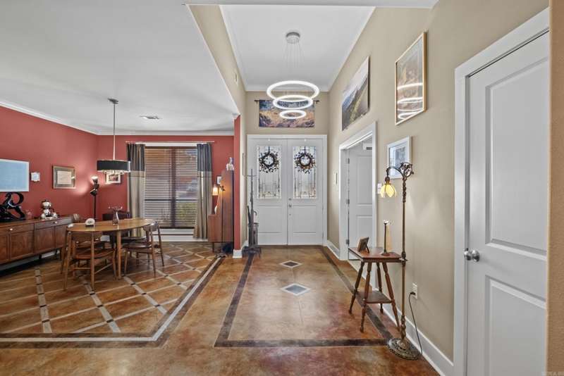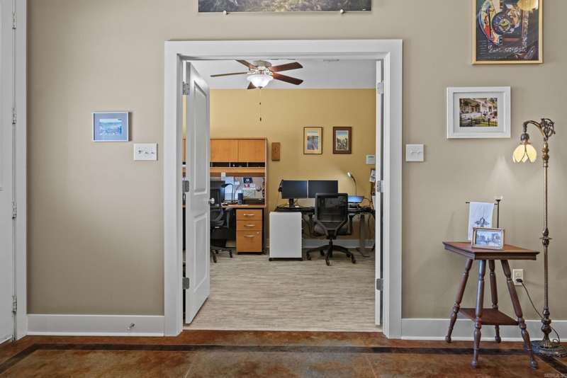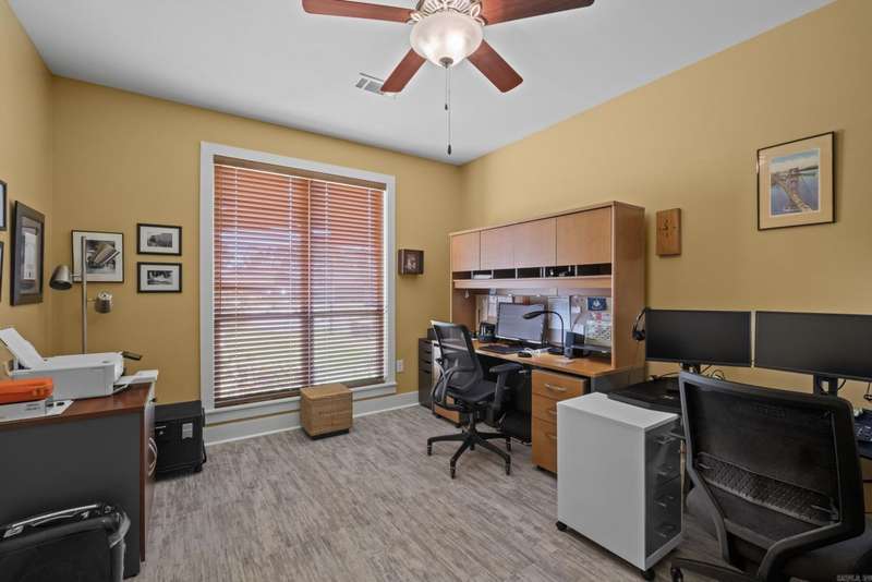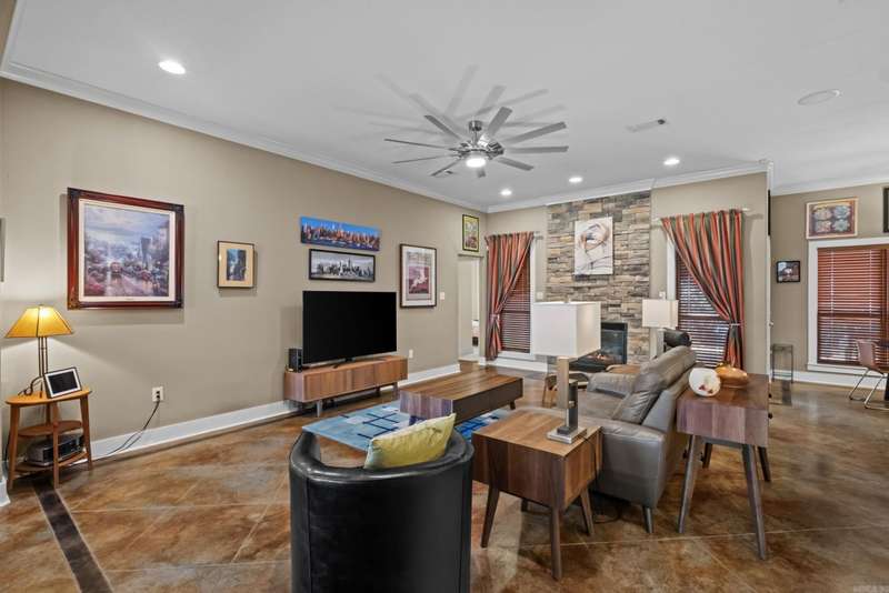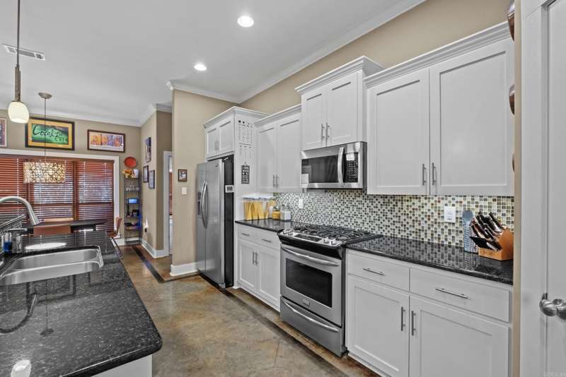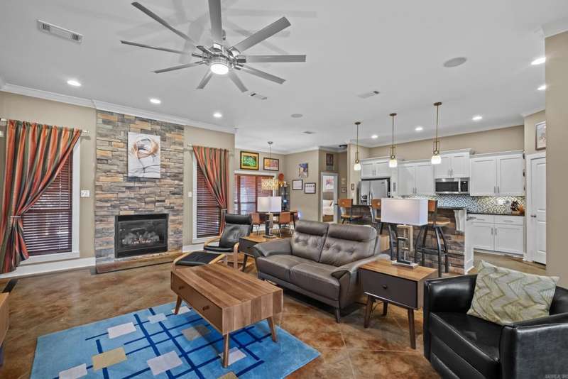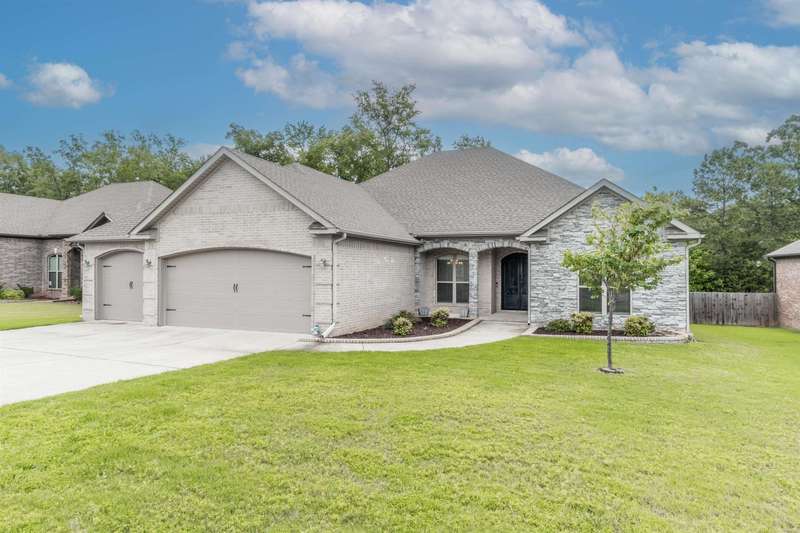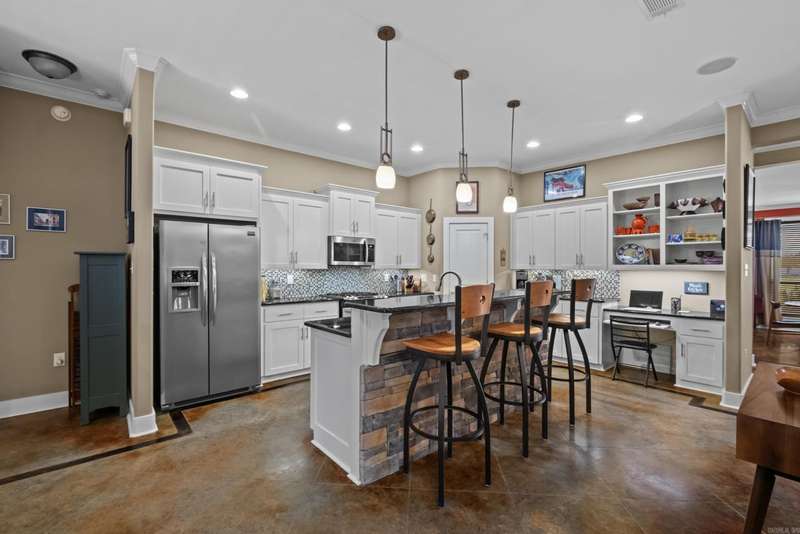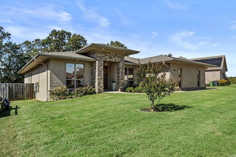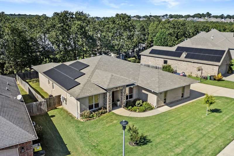 $7500 Paint Allowance w/ acceptable offer!! Beautiful inside and out! Check out this fantastic Sherwood home with charm from the stacked rock facade on the exterior to amazing stained and etched concrete floors on the inside. Enter to find a spacious and open formal dining area along with a designated home office, with laminate flooring, which could also serve as a 4th bedroom. The open kitchen/ living floor plan makes this a great home for entertaining! The living area has a cozy feel thanks to the gas log fireplace with electric start. Granite countertops and stainless appliances grace the eat in kitchen that also boasts a built in desk. The primary suite is spacious and includes an ensuite bath with an updated tile shower and vanity with double sinks. Walk through the huge closet and into the laundry room! Don't miss the half bath located close to the 2 car garage. There are 2 more bedrooms and a shared guest bath. Sit out on the covered patio with enlarged deck space and enjoy the level, fully fenced backyard. This home will check all of your boxes! New HVAC 2024, New Roof & Solar panels (already paid off!) 2022, Master shower 2021, Deck 2020. Don't miss this one!