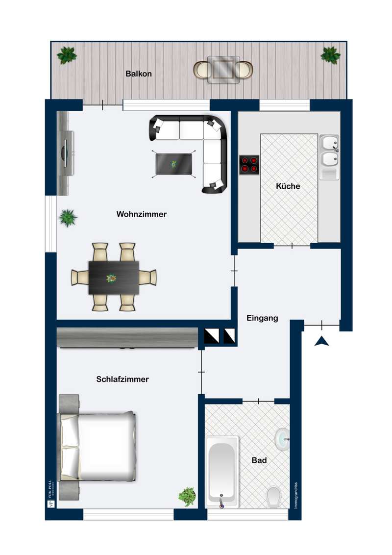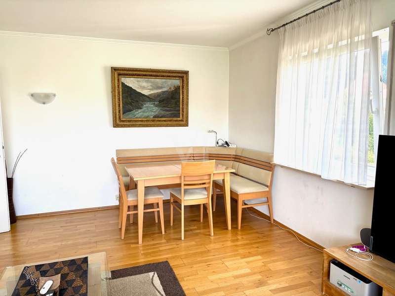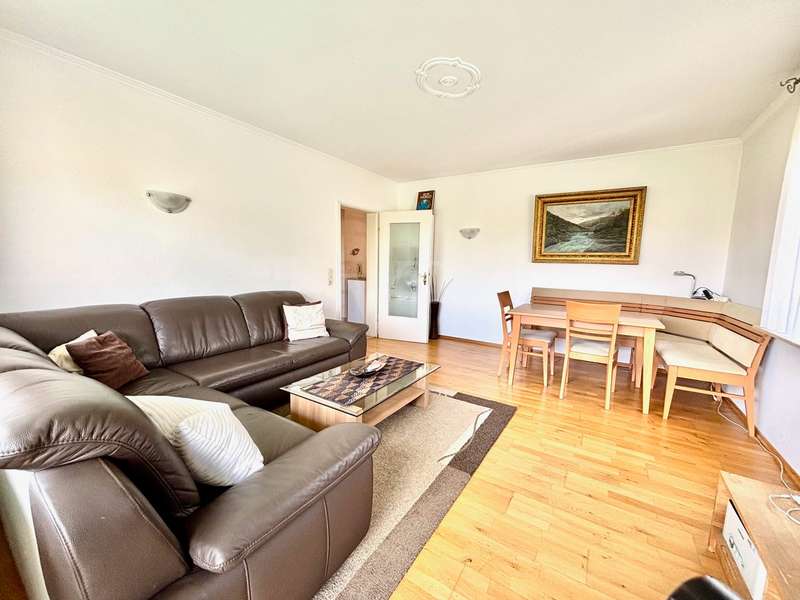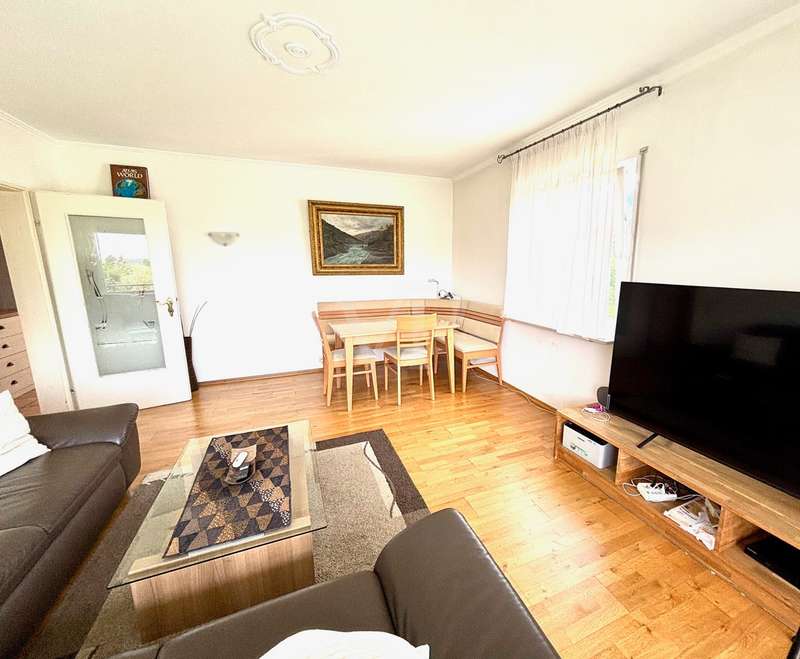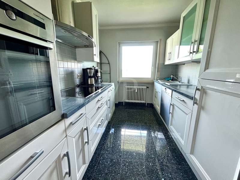 This spacious apartment is located in a well-kept apartment building from 1973 in a quiet residential area. With a living area of approx. 60 m², it offers enough space for two people. The apartment offers a bedroom, a large living room with access to the sunny balcony. The bathroom is equipped with a shower, WC and a washing machine. A modern fitted kitchen is part of the equipment. An absolute highlight of the apartment is the large balcony with a wonderful view of the greenery - from which you can also enjoy a magnificent distant view. Here you can end your day in peace. A separate parking space ensures that you can always park your car conveniently and safely. The location of the apartment is ideal for people who want to enjoy peace and nature. You will find numerous shopping facilities, schools and kindergartens in the surrounding area. Public transportation as well as the main road and the freeway are easily accessible.