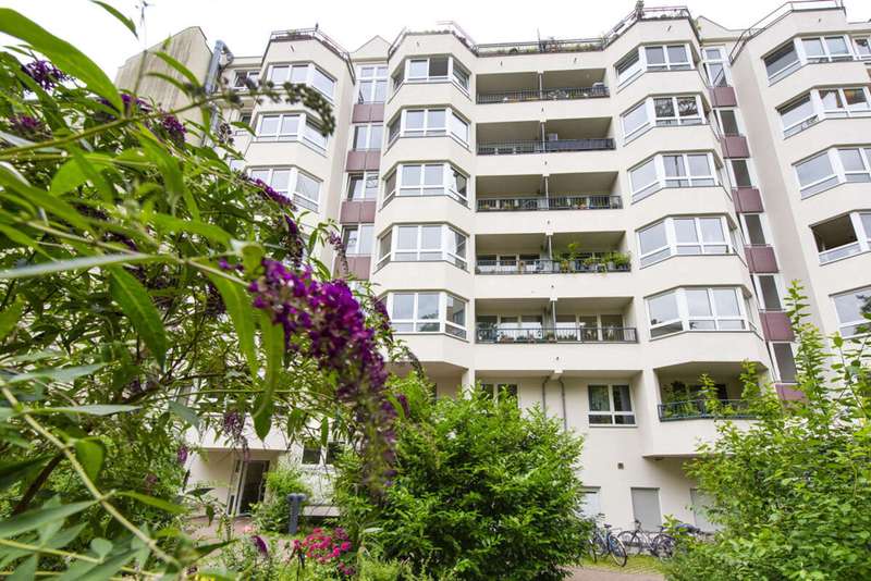 Built in 1994, the 7-story apartment building blends harmoniously into the historic building line. The residential floors are conveniently accessed by elevator and staircase. Each apartment is rented and has three rooms with a living space between approx. 79 m² and 90 m². The modern floor plan is characterized by the fact that ideally all rooms lead off individually from the hallway. The large windows provide a bright and friendly living atmosphere. The majority of the residential units are equipped with a balcony, heated winter garden and a spacious terrace. Especially nice: the light-flooded bay windows, which create an attractive connection between inside and outside. Because the beautifully landscaped garden courtyard also guarantees a fabulous wide view of the greenery. This is the perfect place to relax. In the Viktoria project there are 28 rented residential units and 1 commercial unit for sale. The apartments are located in the front building and have living areas between approx. 78 m² and 89 m².