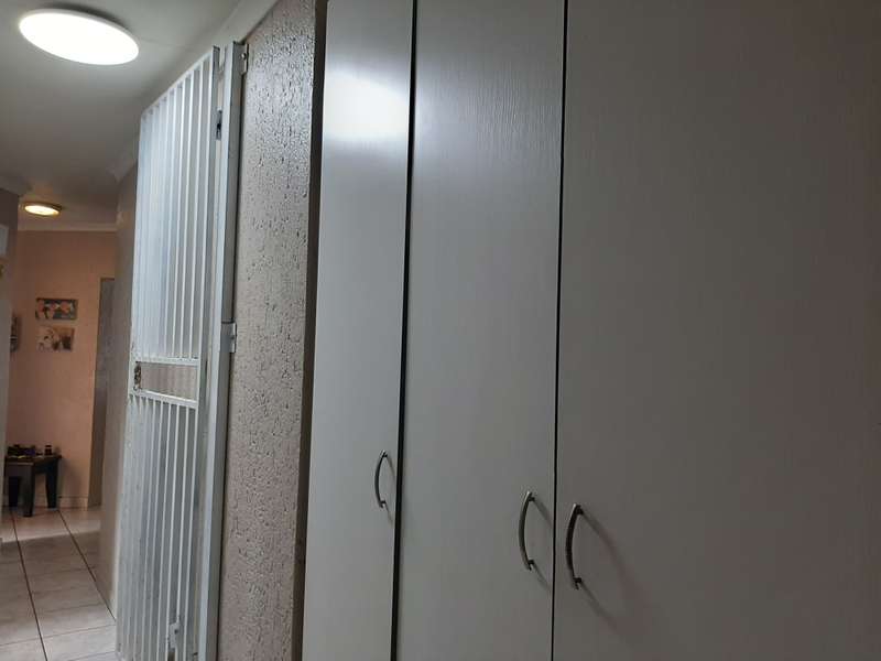 This property is situated in a secure complex in Delmas and consists of 2 bedrooms and 2 full bathrooms, of which one is on suite, a kitchen with scullery and laundry, a living room, and a dining room. There is a double garage, a small courtyard, and a yard at the back. The property is very secure and close to all amenities. The patio has a built-in braai. There is a 2500-liter water tank with a pressure pump Pre-paid water and electricity.