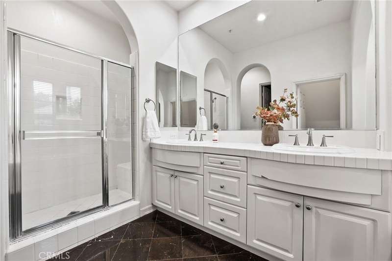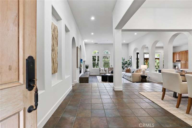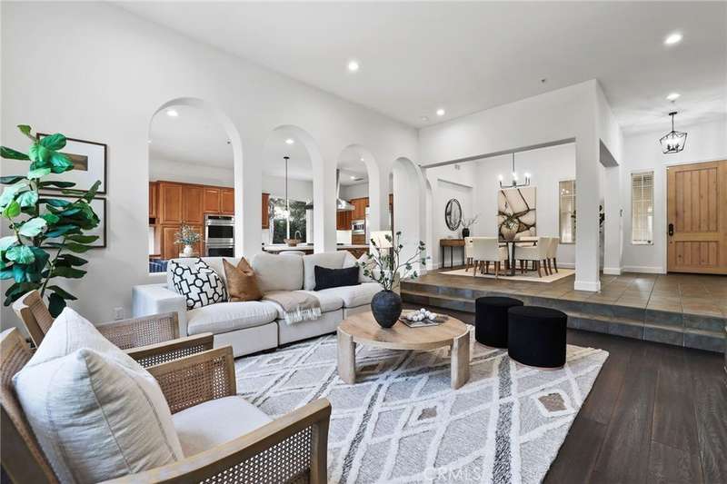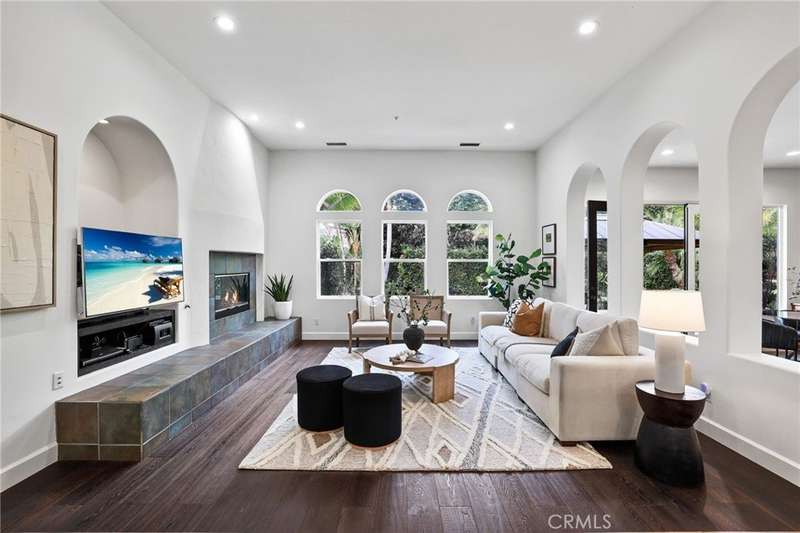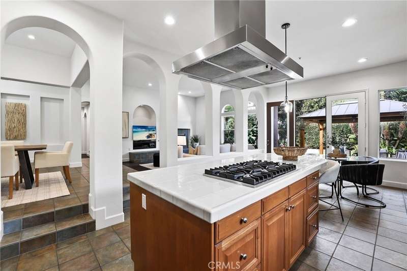 Tucked behind the gates of the prestigious 24-hour guarded Madrid community, this exquisite four bedroom three bath single-level residence offers the perfect blend of elegance, comfort, and resort-style living. A carefully landscaped gated courtyard and graceful archways set the tone as you step inside this beautifully designed home. The open-concept floor plan flows effortlessly, with arched transitions leading from one inviting space to the next. An elevated dining area overlooks the expansive living room and kitchen—ideal for hosting gatherings large or small. The chef’s kitchen impresses with a grand center island featuring a built-in cooktop, double ovens, a convenient office nook, and French doors that open to an entertainer’s dream backyard. Step outside to enjoy your private oasis complete with a covered gazebo, sparkling saltwater pool, and relaxing spa—perfect for outdoor dining and leisure. A separate family room with a half bath provides a versatile space for movie nights, a playroom, or even a home studio. The luxurious primary suite is a true retreat, highlighted by a stunning stone fireplace and an adjoining sitting room with built-in shelving—ideal for a home library, office, or fitness area. French doors provide direct access to the backyard, while archways lead to the spa-inspired primary bath featuring dual vanities, a walk-in shower, a soaking tub, and an impressive walk-in closet. The three generously sized secondary bedrooms, a well-appointed laundry room with abundant storage, and direct access to the three-car garage add everyday convenience. With its blend of sophistication and comfort, this home truly embodies the best of luxury living in one of Tustin’s most coveted communities. Welcome yourself home to 12215 Wyne Court.