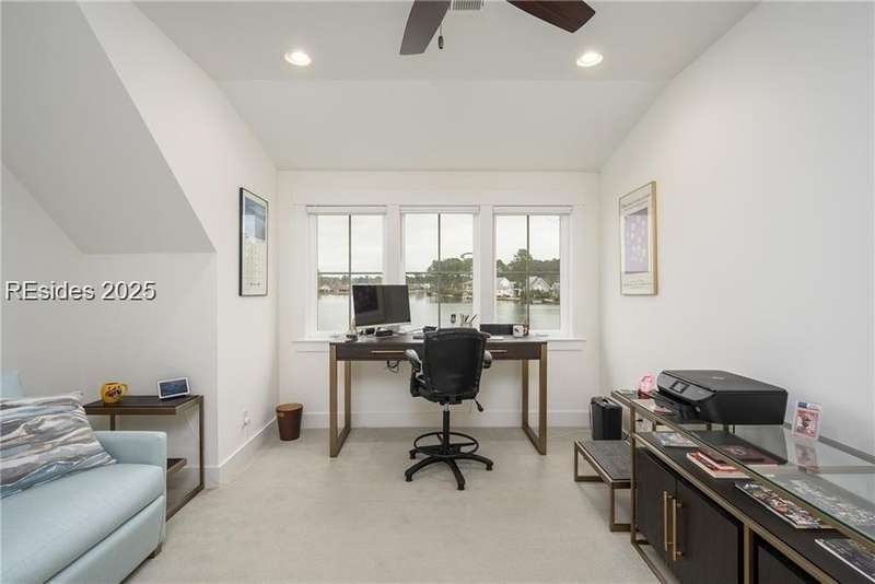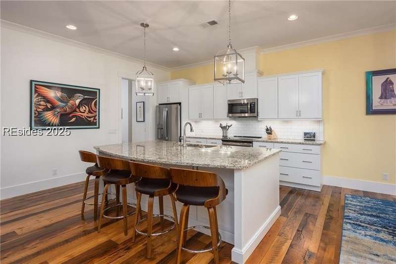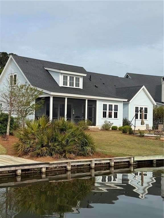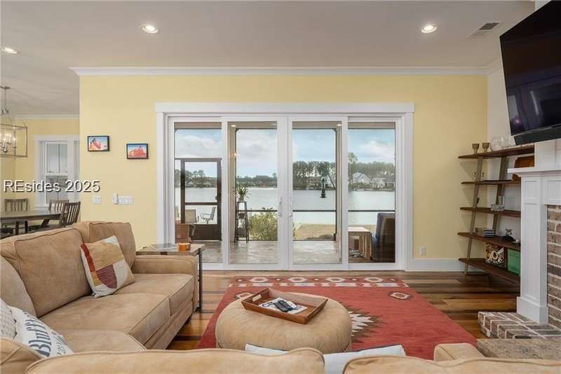 Waterfront 3BR/3BA Charmer with Private Dock and Long Lake Views, this custom crafted waterfront home offers stunning, long-range views of Hampton Lake and a private dock, perfect for tying up your pontoon boat, kayak or skiff. This 200+ acre lake provides opportunities to fish, sail or motor to the private community dock and dine at Backwater Bill's Restaurant. Thoughtfully designed and custom built, it features reclaimed hardwood floors, granite countertops, stainless steel appliances, and a dedicated home office. The kitchen includes an oversized pantry and ample cabinetry, blending style and function. A cozy gas fireplace adds ambiance to the living space, while foam insulation enhances energy efficiency throughout the home. The walk-in attic provides convenient extensive storage. Your primary suite is located on the main floor and includes a walk-in closet with convenient laundry room. A second bedroom with a full bath is also on the first floor, ideal for guests or multi-generational living. Upstairs, you'll find the third bedroom, a full bath, and a 166 sq ft bonus room, perfect for a media room, home gym, or possible 4th bedroom. Additional highlights include a garage with A/C unit, epoxy-finished floors, and a 220V-50A outlet ready for EV charging. This home is a rare combination of charm, comfort, and functionality, perfectly positioned to make the most of Hampton Lake's extensive amenities. Hampton Lake features full fitness center and spa, Lazy River pool, Crystal Lake for swimming, Pickleball, Tennis, Basketball and Bocce courts and popular Beer Garden for socializing. Numerous Clubs provide many opportunities to enjoy the Lake Lifestyle including access to many local golf courses with your neighbors.