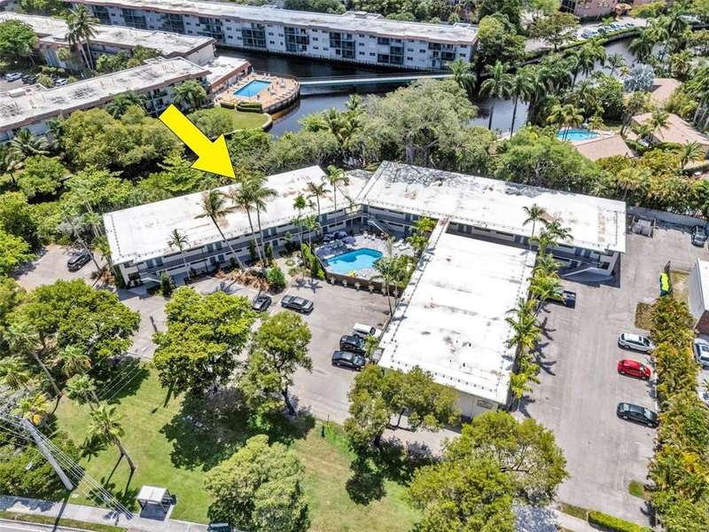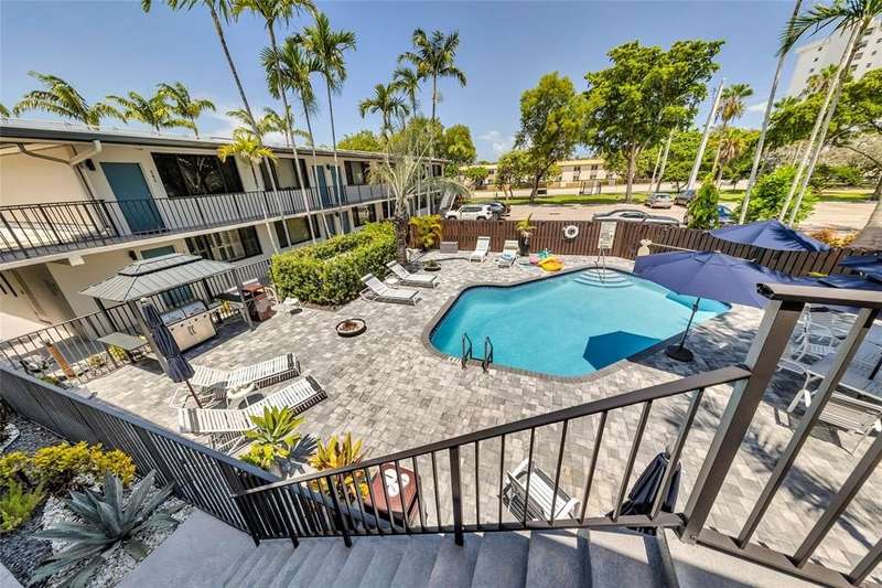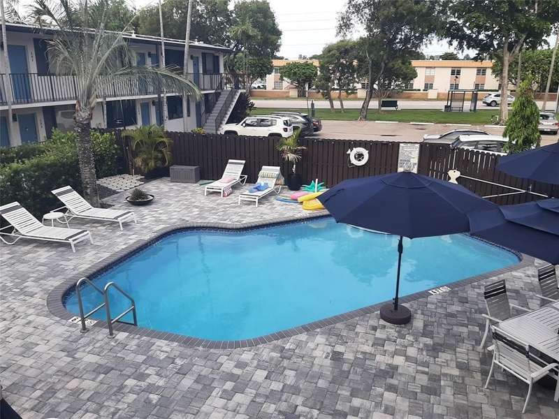 Attractive 2 story condo complex. New roof in 2024, pool redone 2023 (plumbing updated & resurfaced). All impact windows & door. This second floor unit is ready for renovation. If you are looking for a pied-a-terre in Wilton Manors -- here it is! Easy walk to NE 21 Court & straight down to Wilton Drive, that is 4 blocks. You can have two pets, total weight less than 65 lbs. They will also need to accompany you to the association interview. This unit has one assigned parking space, #82. If you have two vehicles, the 2nd one can be parked at the north end of the lot for $100/mo. Lovely amenities include - pool, BBQ, bike racks, dog walk, laundry facilites, & community room with gym equipment. You have probably driven by this complex and not noticed....Come see this sweet spot!