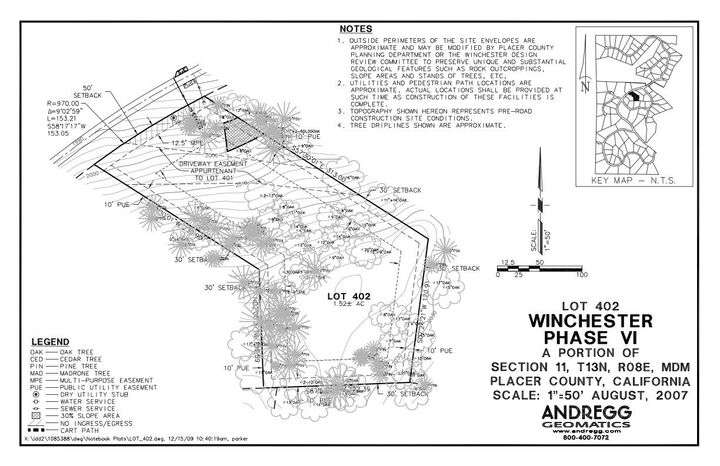 Tranquil Private Escape - Lot 402 spans 1.52 acres and offers a rare combination of serenity and natural charm. Set back within a secluded location, the homesite is enveloped by lush greenery that ensures privacy while still connecting you to the heart of Winchester's community. An uphill driveway leads to the top building site, enhancing the sense of arrival and maximizing the lot's potential. From this elevated position, the property also enjoys north-facing views towards the Bear River. Whether envisioned as a refined weekend retreat or a full-time residence, this property offers a perfect canvas for a home that celebrates the Sierra Nevada foothills.