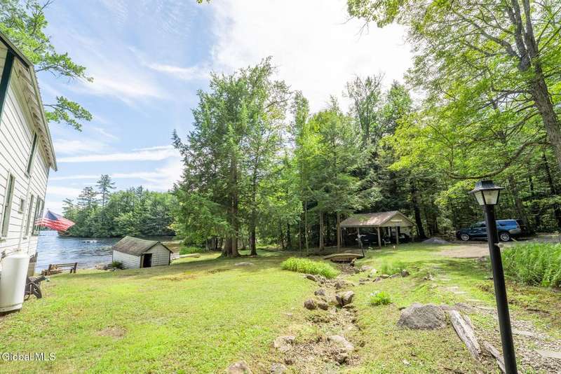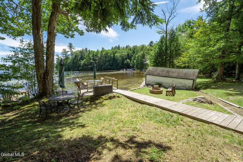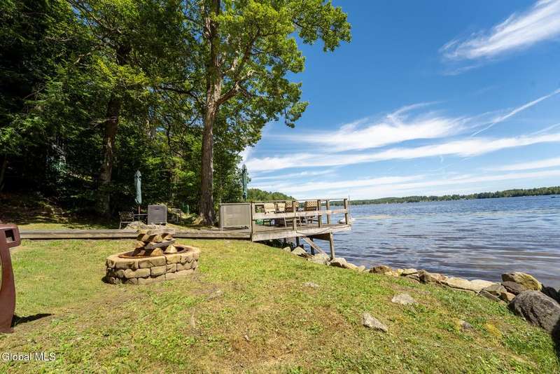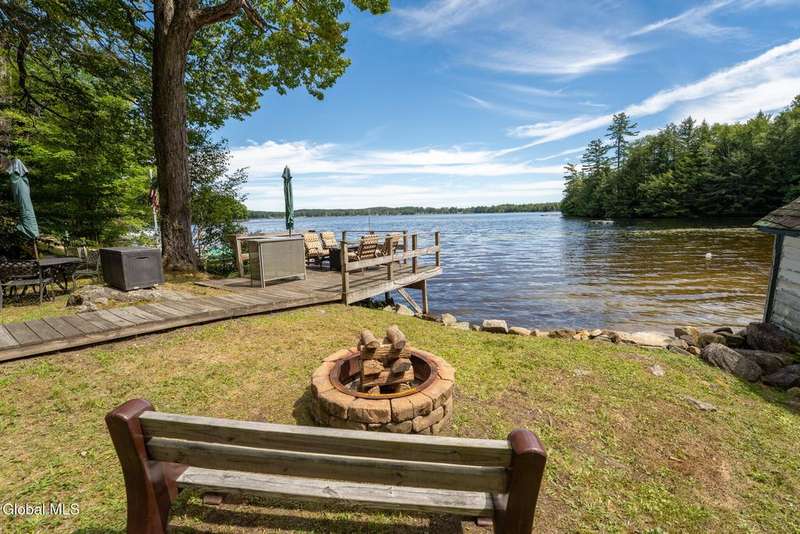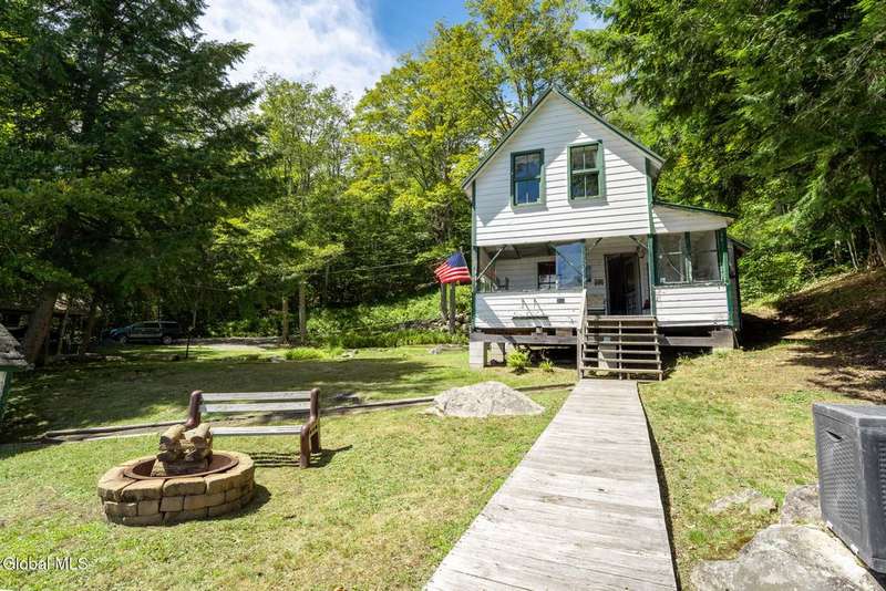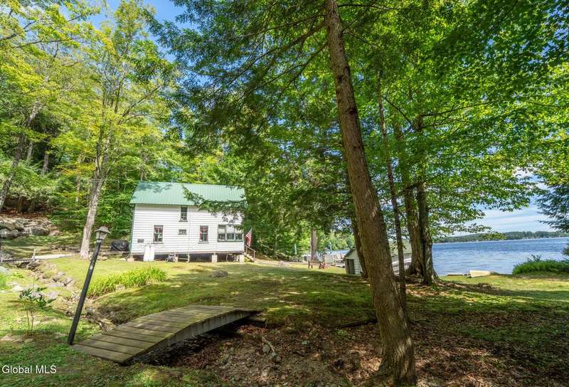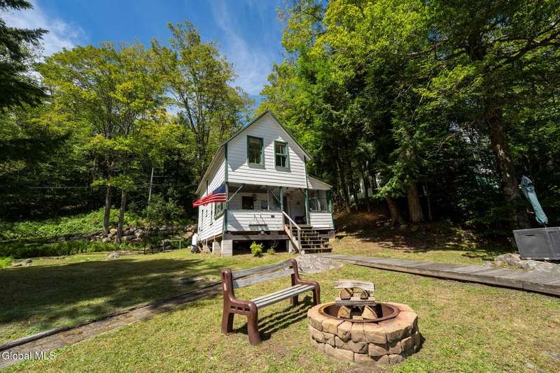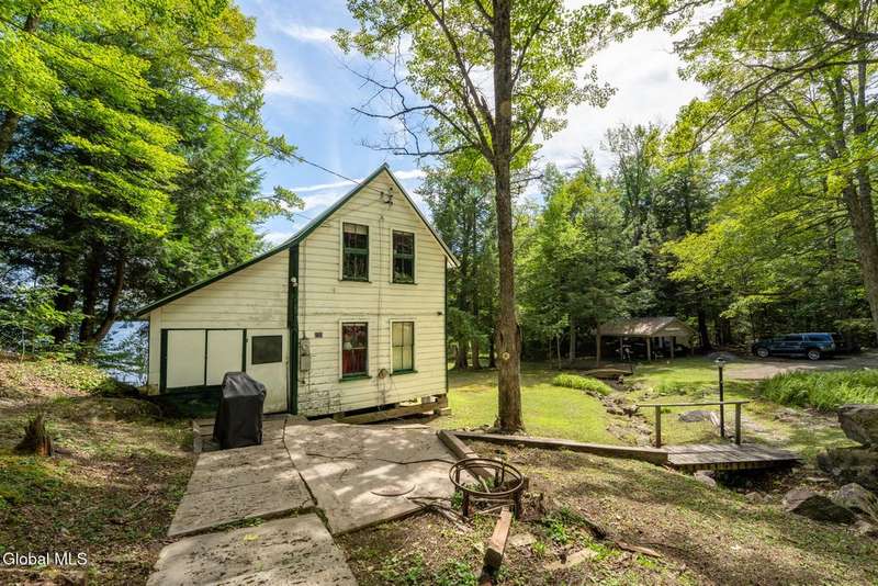 Enjoy the timeless charm of Adirondack lake life with this rustic, seasonal 4-bedroom camp nestled on the shores of West Caroga Lake. Set on a 1.10-acre lot w/ 155 feet of private lakefront, this property offers a sandy beach, gradual slope to the water & ample space for parking guests. Perfect for anyone who loves the laid-back vibe of rustic lakefront camps, this home features a lakeside back porch & a deck perched over the water, complete with a propane firepit for unforgettable evenings. Inside, you'll find a warm & casual interior with 4 BRs plus bunk space and a half bath (no tub or shower). Kitchen includes refrigerator, gas range and microwave (dishwasher is not hooked up). Recent updates include new piers & leveling of the camp in 2021. The property also includes an older boathouse and a sturdy two-car carport. A small creek, featuring two charming bridges, meanders through the natural, wooded landscape. This lakefront gem delivers the best of relaxed ADK living. Bring your vision for updates or enjoy this great camp as-is!