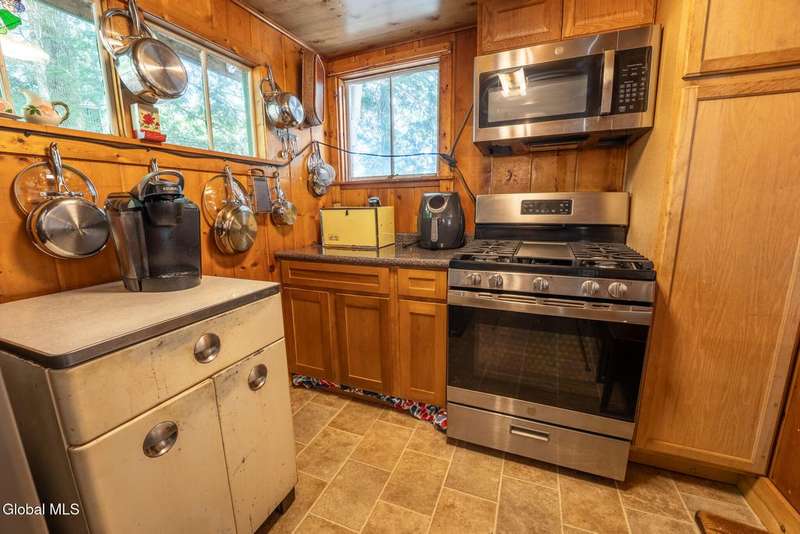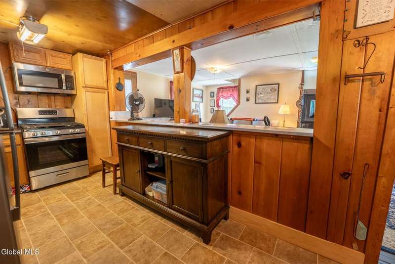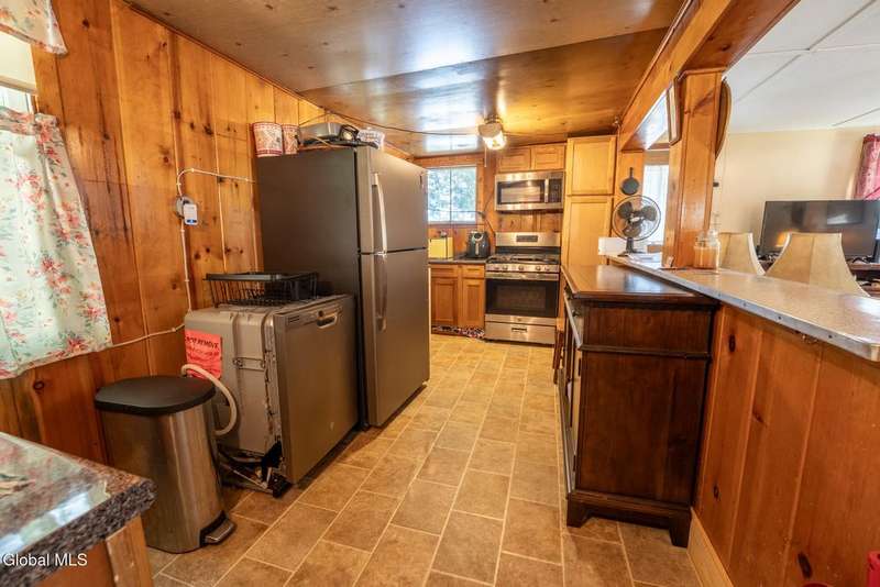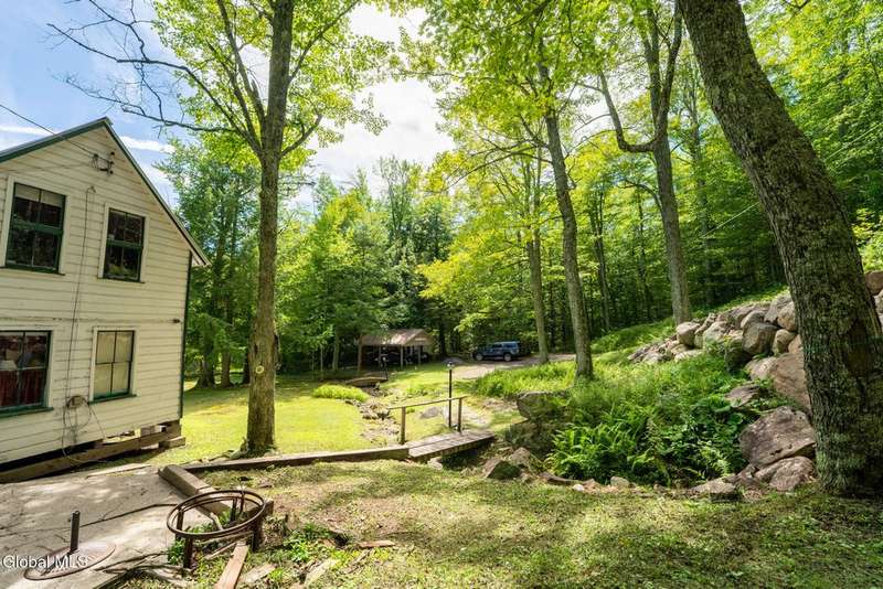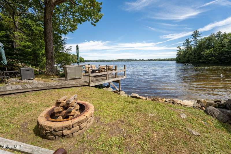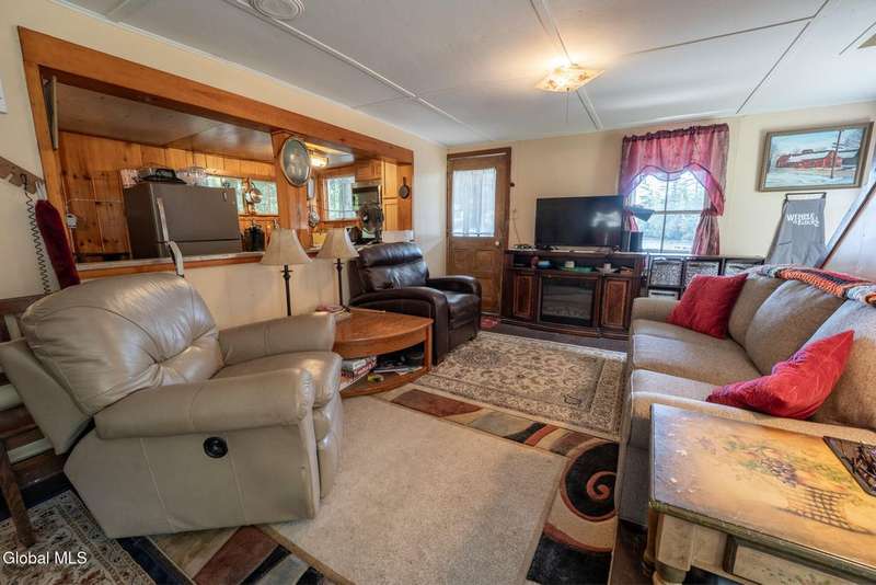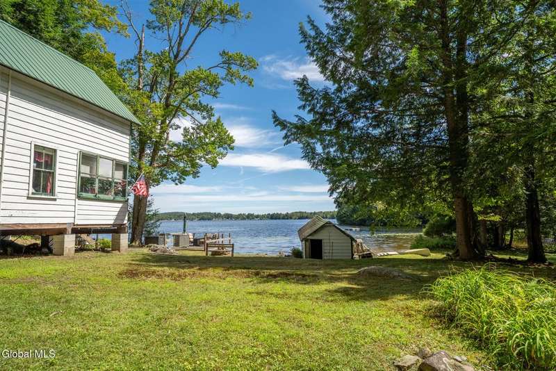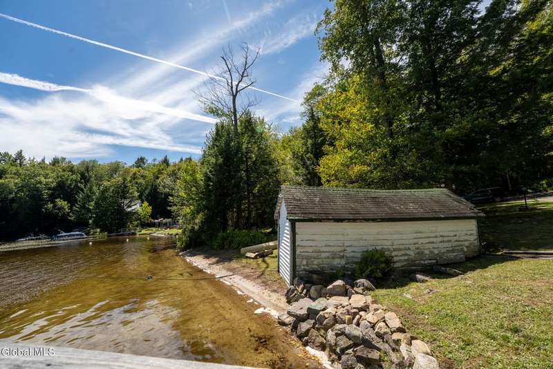 Enjoy the timeless charm of Adirondack lake life with this rustic, seasonal 4-bedroom camp nestled on the shores of West Caroga Lake. Set on a 1.10-acre lot w/ 155 feet of private lakefront, this property offers a sandy beach, gradual slope to the water & ample space for parking guests. Perfect for anyone who loves the laid-back vibe of rustic lakefront camps, this home features a lakeside back porch & a deck perched over the water, complete with a propane firepit for unforgettable evenings. Inside, you'll find a warm & casual interior with 4 BRs plus bunk space and a half bath (no tub or shower). Kitchen includes refrigerator, gas range and microwave (dishwasher is not hooked up). Recent updates include new piers & leveling of the camp in 2021. The property also includes an older boathouse and a sturdy two-car carport. A small creek, featuring two charming bridges, meanders through the natural, wooded landscape. This lakefront gem delivers the best of relaxed ADK living. Bring your vision for updates or enjoy this great camp as-is!
