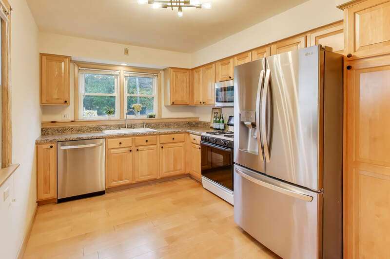 Welcome to 821 Warrenville Road, a charming and well-maintained 3-bedroom, 2-bath ranch ideally located just minutes from everything downtown Wheaton has to offer. This inviting home blends classic charm with comfortable modern updates, featuring an attached garage, hardwood floors beneath the carpeting, and a welcoming front porch perfect for morning coffee. The kitchen showcases natural wood cabinetry and stainless steel appliances, maintaining a warm, timeless feel. Both full baths are conveniently located on the main level, making the layout ideal for easy living. Downstairs, the large finished basement offers additional living space with timeless cypress wood paneling and newer vinyl plank flooring-perfect for a family room, play area, or home office. Outside, enjoy a friendly neighborhood setting just three-quarters of a mile from the Wheaton Metra Station, Whittier Elementary, Edison Middle School, and Downtown Wheaton's dining and shopping scene. You'll also love nearby recreation at Prairie Path Park, the Wheaton Prairie Path trailhead, Kelly Park, and the brand-new Roosevelt Road KinderCare-plus convenient grocery shopping at Mariano's. This delightful home offers a rare blend of walkability, warmth, and Wheaton charm-ready for you to make it your own.