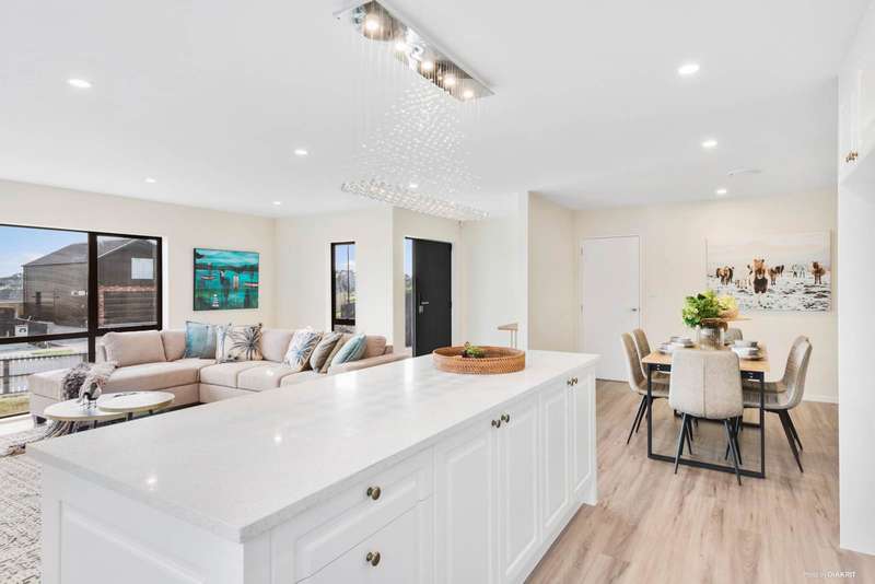 Welcome to the latest gem in the serene waterfront community of Glenbrook! This near new residence at 34 Tahuna Minhinnick Drive has been meticulously designed to accentuate its exquisite locale while offering an unparalleled ease of living. Featuring a splendid 196m2 floor-plan, this four-bedroom haven emphasizes seamless indoor/outdoor living with two expansive decks, inviting you to immerse in the coastal lifestyle while being sheltered from the occasional sea breeze. The swathes of double-glazed windows and doors grant tantalizing glimpses of local waterways and ensure passive solar gains, harmoniously supplemented by a heat pump and thorough insulation. The brilliantly outfitted open-plan kitchen is a haven for entertainers, boasting durable timber-toned floors-ideal for sandy feet, and a generous breakfast bar offering a stylish dining solution. Each of the three beautifully tiled bathrooms speaks of indulgence. Combined with free-flowing family and dining spaces, the residence promises flexibility for extended family or guests with a sitting room adjoining one of the two elegantly ensuited bedrooms which would be the perfect space for extra flatmates, AirBnb, or work from home opportunities. The newly added electric gate complements the fully landscaped, low-maintenance 578m2 grounds. Double internal access garaging and a spacious driveway provide ample off-street parking and accommodation for a boat or trailer. Water enthusiasts are minutes away from Glenbrook Beach and the boat ramp, allowing indulgence in various aquatic activities, while the nearby coastline pathways ensure rejuvenation in fresh sea air. Whether upsizing or seeking a convenient holiday home, the accessibility to Waiuku village, fifteen minutes away, and the available schooling at Glenbrook Primary School and Waiuku College make this home a desirable choice. With immediate possession available, now is the opportune moment to transform your new home aspirations into reality! *Please note - photos are from a previous listing and an electric gate & window treatments have now been added.