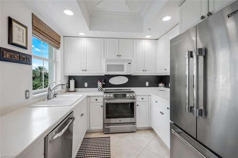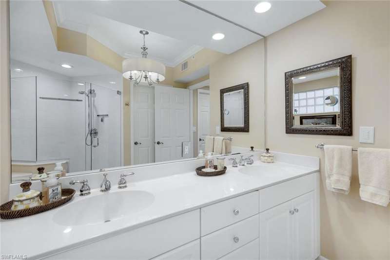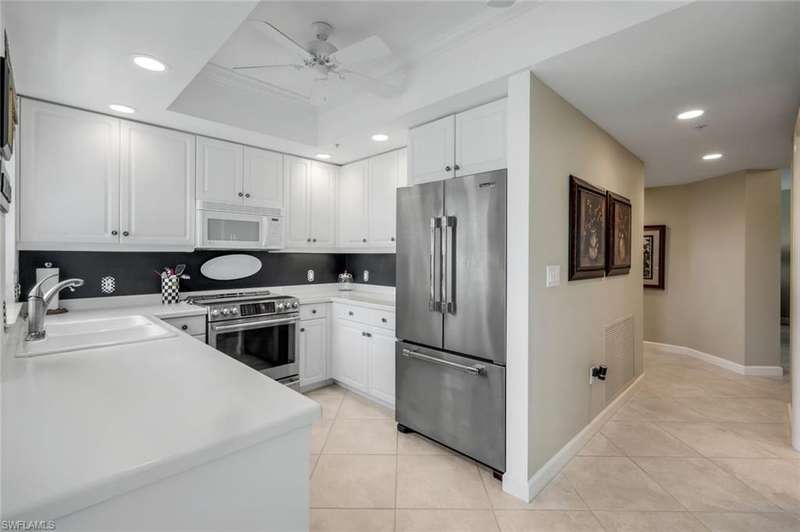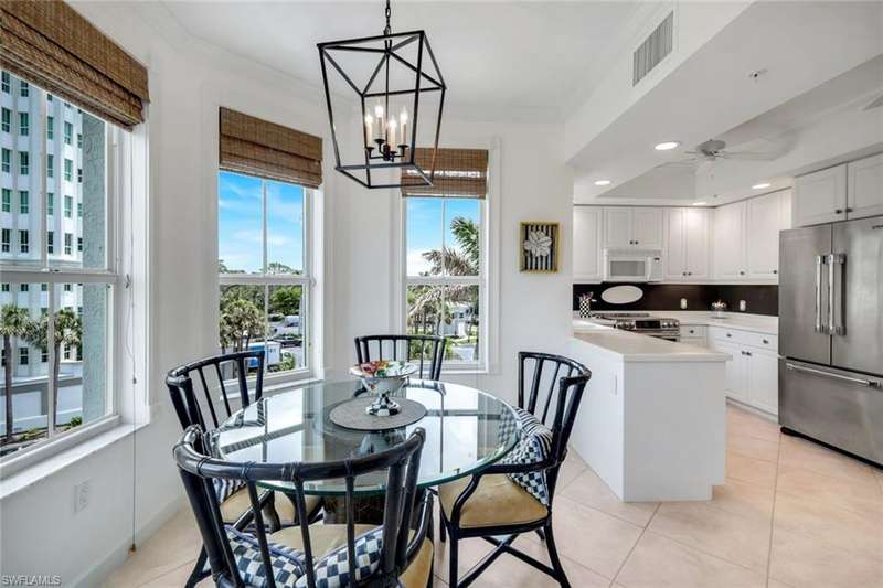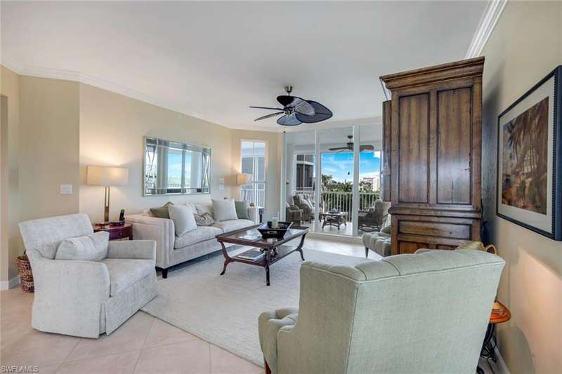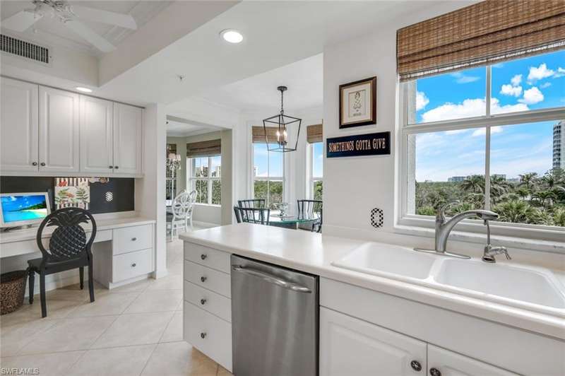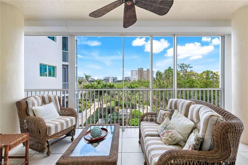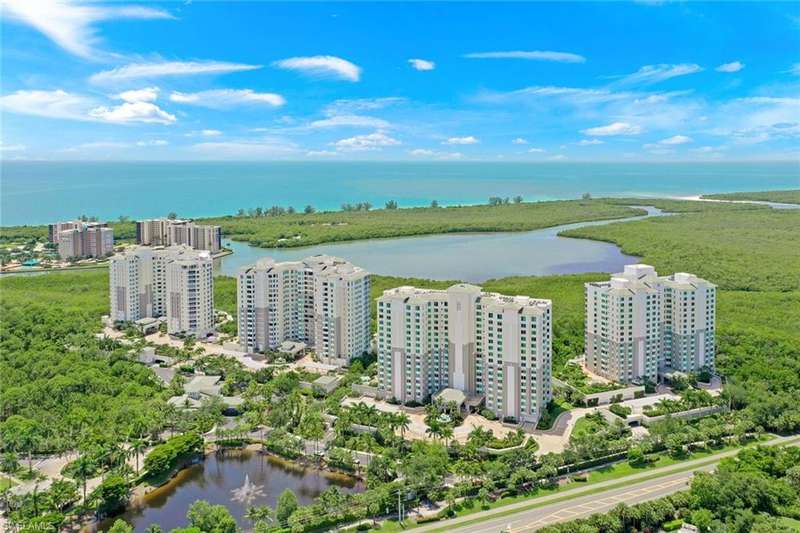 This pristine and bright 3-bedroom, end-unit condo offers lots of windows and an expansive lanai with lush views of the palm trees, mangroves and Turkey Bay. Soft neutral tones, crown molding, a white kitchen, and spotless tile floors throughout make this a perfect, move-in ready tropical Naples retreat. The kitchen is equipped with stainless steel appliances, desk workspace, and a breakfast area. The primary suite offers two walk-in closets, a bathroom with double vanity, separate tub-shower, and direct access to the lanai. One of the two guest bedrooms has an en-suite full bath and private lanai. The wrap-around lanai adds over 500 sqft of living space to relax, dine & enjoy the views. It is a short walk to the renowned & pristine Vanderbilt Beach and Delnor-Wiggins Pass State Park from the Dunes Community with direct access to Connor Park. The building offers an array of exceptional amenities, including a pool and spa, a covered grill area, bike storage, a deeded under-building par