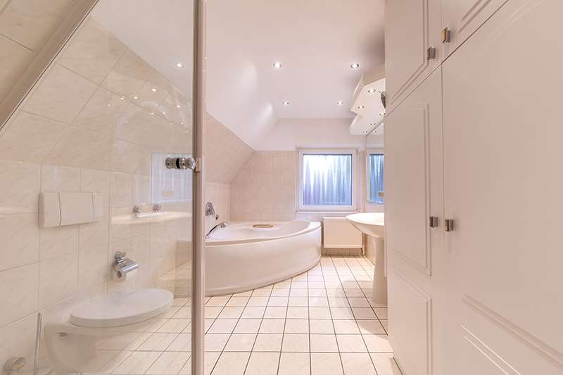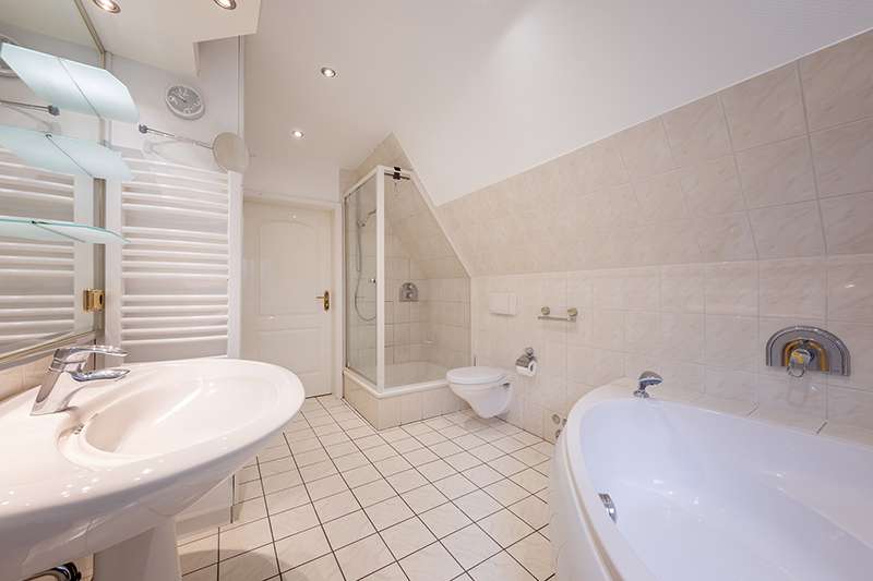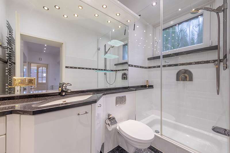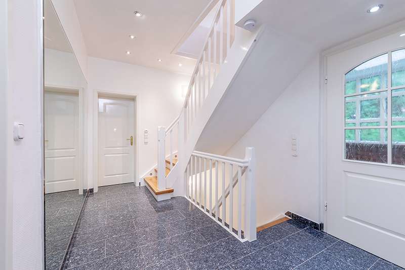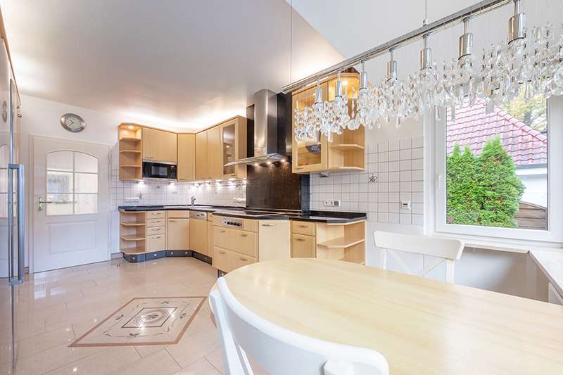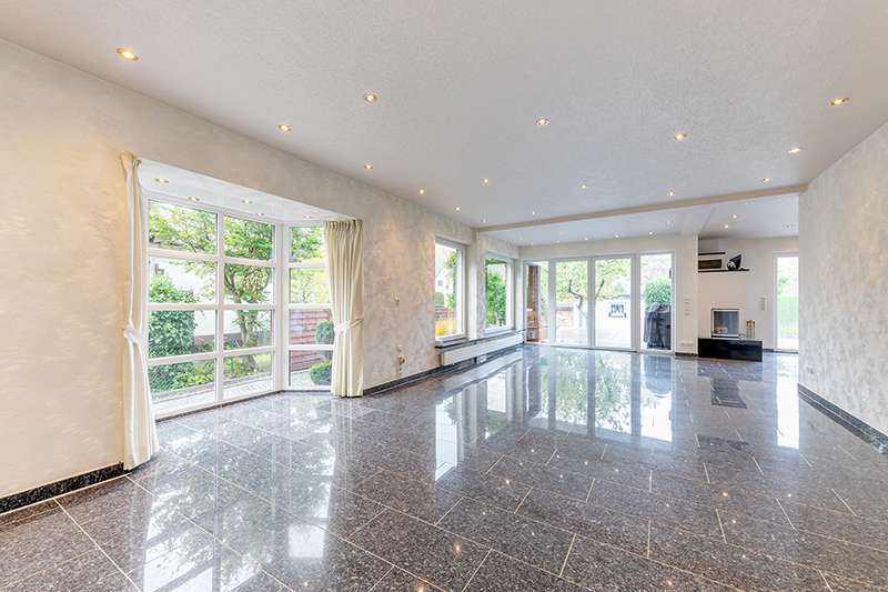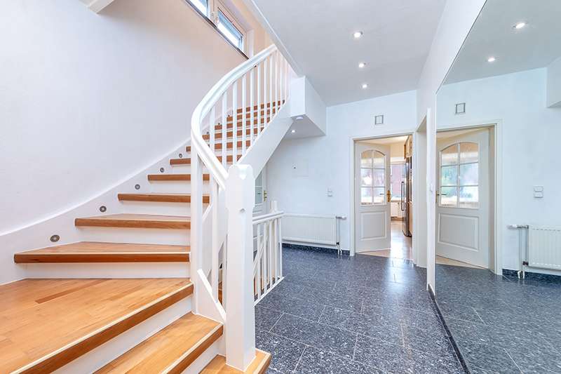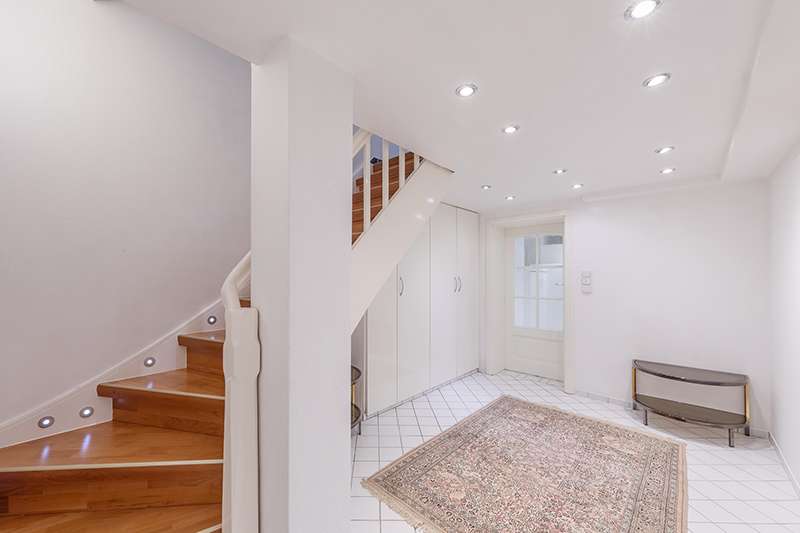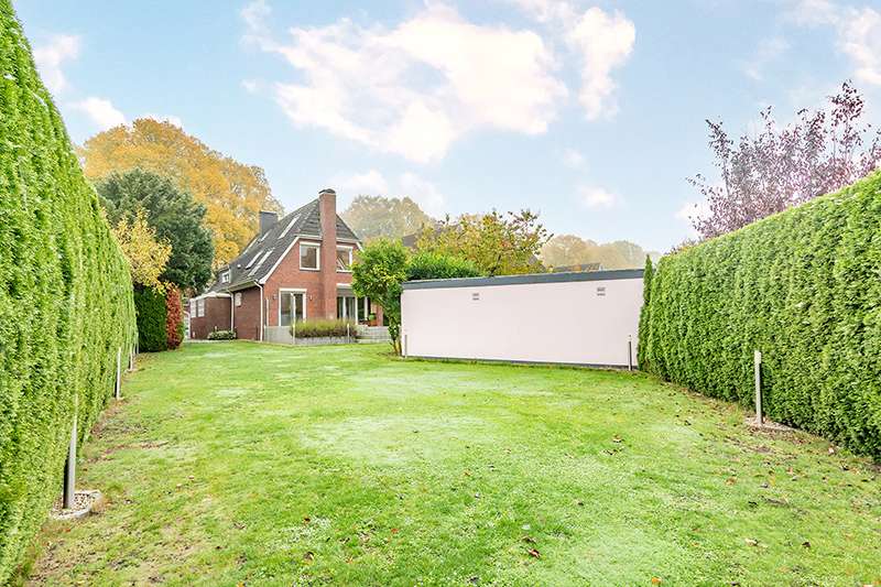 This well-kept detached house combines cozy charm with modern living comfort and offers a generous living and usable area of approx. 258.36 m² on a plot of approx. 904 m². The house and the plot have an attractive south-west orientation. The combination of prime location, large plot and very stylish interior is a rarity on the market. The quiet and highly sought-after residential area is ideal for discerning owners who value quality and a contemporary living ambience. Numerous renovations and modernizations were carried out between 2000 and 2015 with great attention to detail and using high-quality materials. The house was completely renovated, converted and modernized during this period. In addition, the continuous maintenance underlines the high standard of this property. Upon entering the property, you will first find yourself in the vestibule and then enter the interior of the house. The hallway leads to the kitchen, the living room and the guest bathroom with shower. The very spacious living room with its gigantic window fronts provides pleasant daylight and is divided into a dining and a living area, which is adjoined by the cozy fireplace room with a view of the terrace and garden. The window front facing the street is darkened so that you have the greatest possible privacy here. A regularly maintained and ready-to-use fireplace provides cozy warmth and atmosphere; underfloor heating is also installed in the living area. A solid wooden staircase takes you comfortably to the top floor with its two children's bedrooms, the bathroom with shower and bath and the master bedroom with integrated built-in closet. A spiral staircase leads to the top floor, which was converted into a living space in 2005 - a continuous room that can be divided into themed areas and is ideal for a teenager or for home office, sports & hobby options (e.g. yoga room with a view). In the basement is the utility room, which offers space for a washing machine and dryer, as well as a guest room (also with usable living space) and the adjoining wellness area with sauna, sauna plunge pool (cold water), shower and towel radiator. Here or by the fireplace in the living room you can spend gray and cold winter days. Outside there is a 40 m² south-west facing terrace with wooden floorboards, electric sun and side awnings, automatic lighting and a hedge with privacy screen. The low-maintenance garden with cherry and apple trees, a mature thuja hedge as a privacy screen, automatic irrigation system, electric entrance gates and double garage ensure maximum comfort. Additional parking is available on the long driveway. This house meets high standards of living quality, space and technology. You are welcome to arrange a viewing appointment to see the advantages of this unique property for yourself. For a first virtual tour & impression, please click here: https://tour.ogulo.com/1pEP