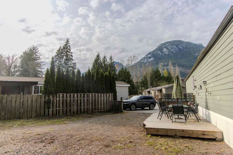 Great opportunity to get in the Squamish market in this 10 year old manufactured home. 2 generous bedrooms and 2 bathrooms with lots of natural light and bright finishing. Open layout with modern kitchen and nice vaulted ceilings. Bonus heated mudroom for all the gear. Big side yard with huge deck and plenty of parking. Forced air natural gas furnace and gas Hot Water tank. None of the maintenance issues of older manufactured homes. Bring the dog and just enjoy. 200 amp service with plenty of room for a car charger or even a hot tub. Easy to see. Call your favorite realtor today.