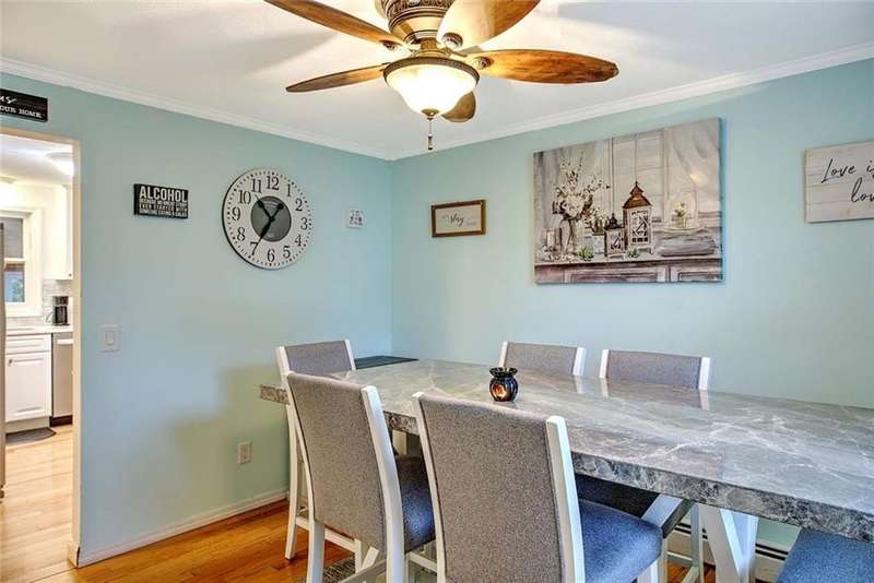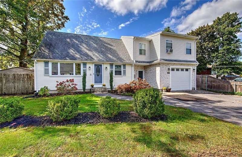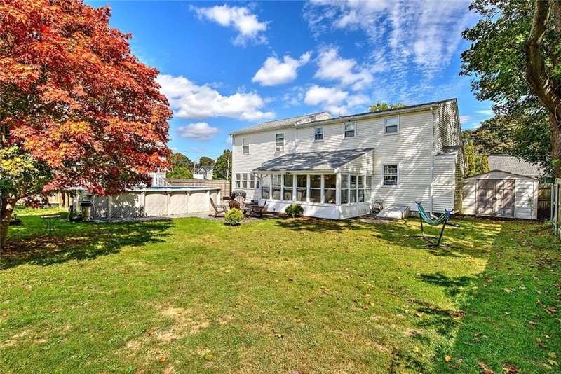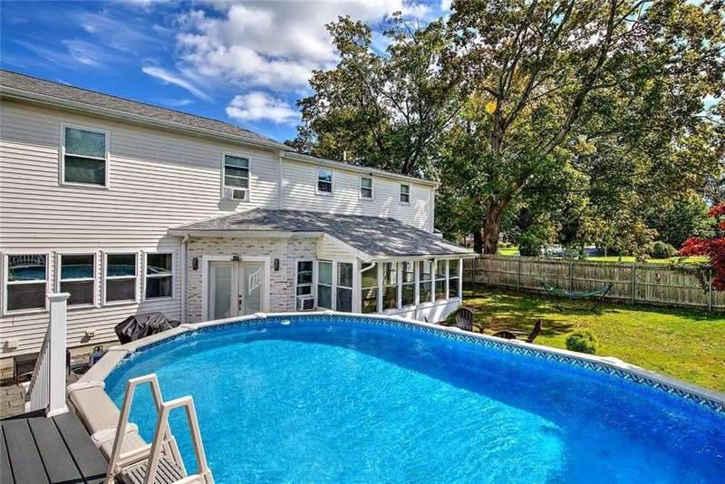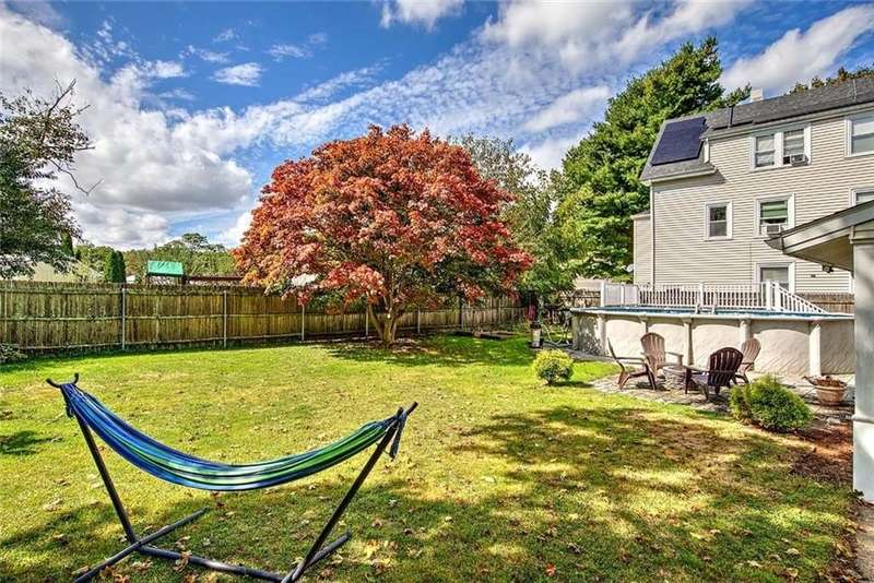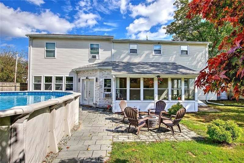 Located in a quiet, established neighborhood, this well-maintained home offers strong curb appeal and a versatile layout that strikes the perfect balance between comfort and practicality. The sun-filled living and dining rooms are warm and inviting, flooded with natural light and hardwood floors that continue throughout the home. These connected spaces are ideal for both everyday living and entertaining. The kitchen, featuring stainless steel appliances, seamlessly flows into the main living areas, making it both functional and stylish. A first-floor bedroom and a bathroom with a walk-in shower provide flexible options for guests, extended family, or multigenerational living. Upstairs, you'll find four additional bedrooms, an updated bathroom, and a spacious flex room—perfect for a family room, home office, or playroom. A large mudroom is well-appointed with terrific storage and a built-in hot tub, creating a unique indoor feature to enjoy year-round. Just beyond, a bright sunroom offers a peaceful retreat with views of the hot tub area and the fenced backyard, which includes mature landscaping, a patio, and an above-ground pool. With its thoughtful layout, well-kept interiors and exteriors, and ample space for a variety of lifestyles, 185 Tidewater Drive is a standout opportunity in Warwick’s desirable Riverview neighborhood within walking distance to Narrangansett Bay.