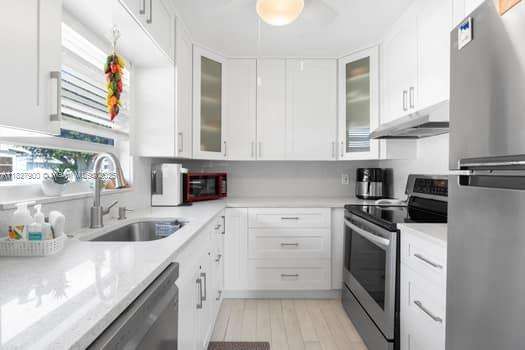 Beautiful First Floor Remodeled condo. 2 Bedroom , 2 Bath. Gorgeous kitchen with real wood soft close cabinetry, Stylish Island, Great storage & Pantry space. Granite counters w/modern appliances. Porcelain tile floors. Completely updated bathrooms & relaxing enclosed Patio space..New Plumbing, & New electrical. This is a beautiful unit, a great location and terrific value.