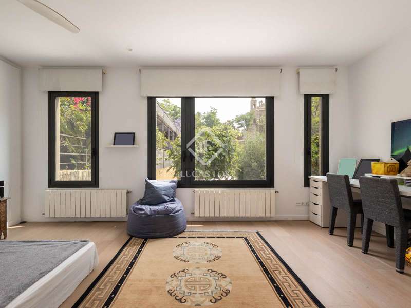 This property is located on a charming, semi-pedestrianized street, with magnificent views of Antoni Gaudí's Torre Bellesguard. It is also close to the prestigious Teknon Medical Centre and top international schools, such as Benjamin Franklin and Oak House. Therefore, this extraordinary New York-style townhouse perfectly combines the neighbourhood 's charm with contemporary luxury. With excellent public transport links to the city centre and the airport, living here means convenience and connectivity at all times. The property is spread over four spacious levels, each carefully designed to accommodate modern family-friendly life. Its generous spaces, high-quality finishes, and flexible layout make it an ideal retreat for families, professionals, or those seeking an urban lifestyle with a touch of exclusivity, without the burden of maintaining a large plot. Ground floor: A high-end kitchen opens onto a beautiful 150 m² private garden , an outdoor oasis ideal for dining, relaxing, or entertaining year-round. This lush green space offers a tranquil retreat in the heart of the city, creating a perfect synergy between indoor and exterior. It also features a storage room and direct access to the rear parking lot for added convenience and practicality. First floor: Two spacious bedrooms with private en-suite bathrooms for the comfort of each resident. It's a space designed for family-friendly life, where tranquility and privacy are the main features. Second floor (entrance level): An open-plan and versatile space that can function as a secondary living room, study , or entertainment area. Large windows fill the space with natural light, creating a bright, welcoming space with great potential to adapt to your needs. Third floor: Two spacious bedrooms with bathrooms, ideal for family members or guests seeking comfort and privacy on one level. Top floor (roof): Spectacular 75 m² terrace with panoramic views of the city, mountains, and sea. It's the perfect place to relax, dine al fresco, or celebrate special moments in a unique and privileged setting. Additional features: - Possibility of installing a lift to facilitate transit between floors. This way, everything will be ready for all stages of life. - Parking: Two private parking spaces included for added convenience and peace of mind. - The property can function as a spacious single-family residence or be divided into two separate units, offering multiple possibilities for large families or as a rental investment.