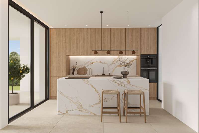 Tucked between Estepona and San Pedro de Alcántara, just moments from the prestigious Guadalmina area, this stunning five-bedroom villa captures the spirit of relaxed Mediterranean living with effortless style. Thoughtfully designed to blend with its natural surroundings, it combines timeless architecture with a modern, welcoming atmosphere that feels both refined and livable. Bathed in sunlight throughout the day, the villa’s open-plan interiors flow seamlessly into beautifully landscaped gardens. Large glass doors blur the line between inside and out, creating an easy connection to the pool area—perfect for quiet mornings, lazy afternoons, or evening gatherings with friends and family. The soft neutral palette, natural textures, and elegant finishes give the home a warm, contemporary feel. The villa also includes a private gym, ideal for maintaining a balanced lifestyle, and a rooftop terrace designed as a flexible outdoor haven—whether for peaceful sunset moments or stylish entert