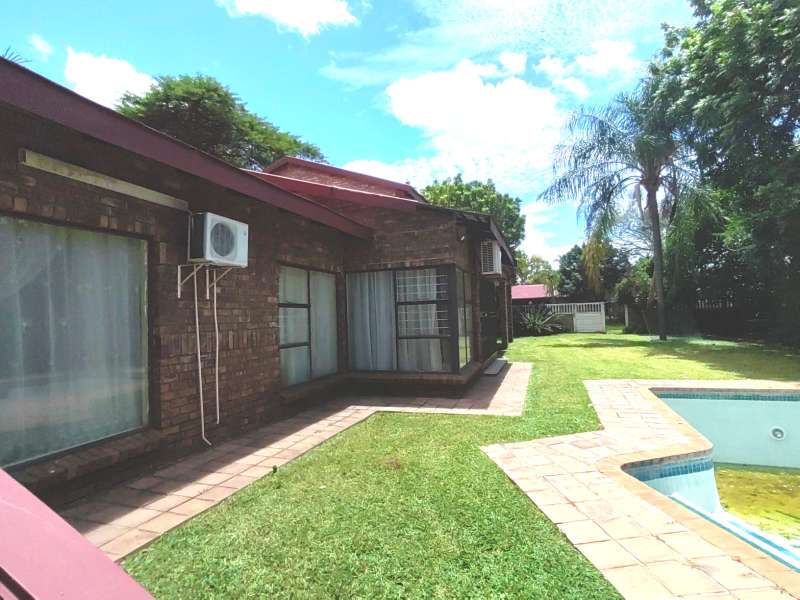Discover your dream family home in this stunning 5-bedroom, 3-bathroom property, perfectly situated on an 815 sqm stand. Designed with comfort and convenience in mind, this home offers ample space for families who love to entertain. Downstairs Features: A luxurious main bedroom with an ensuite bathroom, walk-in closet, and air conditioning. Two additional bedrooms sharing a bathroom. A fitted kitchen with ample cupboards, gas hob and scullery. A cozy living area, perfect for family gatherings. Upstairs Features: Two spacious bedrooms with a shared bathroom. A bar area opening onto private balconies with lovely views. Outdoor Highlights: A sparkling swimming pool for endless summer enjoyment. A beautifully maintained garden with a borehole for hassle-free upkeep. A double garage and ample parking space. This property is conveniently located near Laerskool Rachel de Beer, Gerrit Maritz High School, and Madelief Shopping Centre, ensuring easy access to quality education and everyday essentials. With 4 air conditioning units and a prime location, this home offers comfort, style, and practicality. Don’t miss this opportunity – schedule your viewing today!