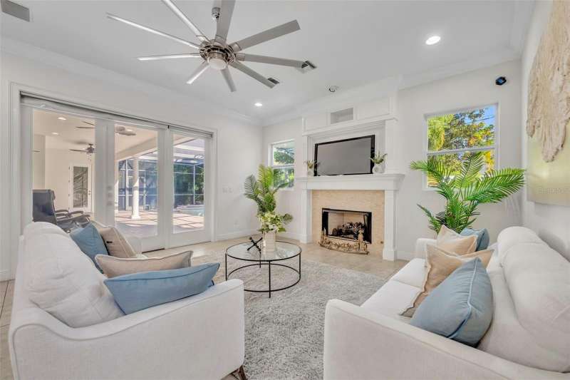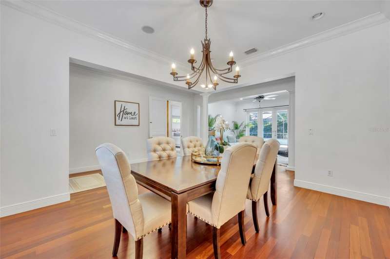 Gorgeous, Custom & recently renovated! This home features 4 bedrooms, 3 full baths & 2 half baths. Spacious, light & bright with 10’ ceilings, Brazilian cherry floors, and a gourmet kitchen. The kitchen is a chef's dream and perfect for entertaining. It boasts natural wood cabinets, large center island, dual fuel six-burner range, wine fridge and a built-in refrigerator. It overlooks a casual dining area and family room with fireplace. The Primary bedroom is on the first floor, large ensuite with California closet system, French doors that lead to screened pool/patio. There is a generous bonus room above the oversized garage which could be used as another bedroom, gym, or office. The closets and storage in this home is amazing. Three guest bedrooms upstairs, one has it own ensuite bath, while the other two share a Jack 'n Jill bath. The property is well taken care of, a newer roof and the Two-car garage has a recently been painted and the floor resurfaced.