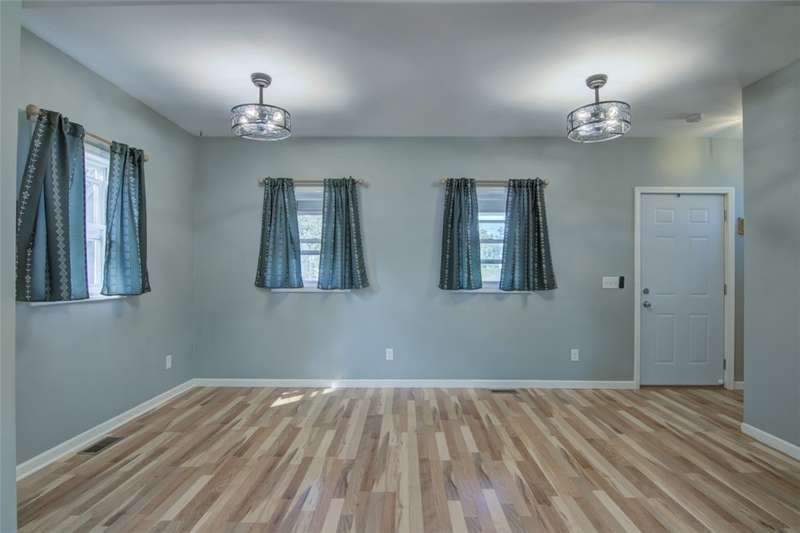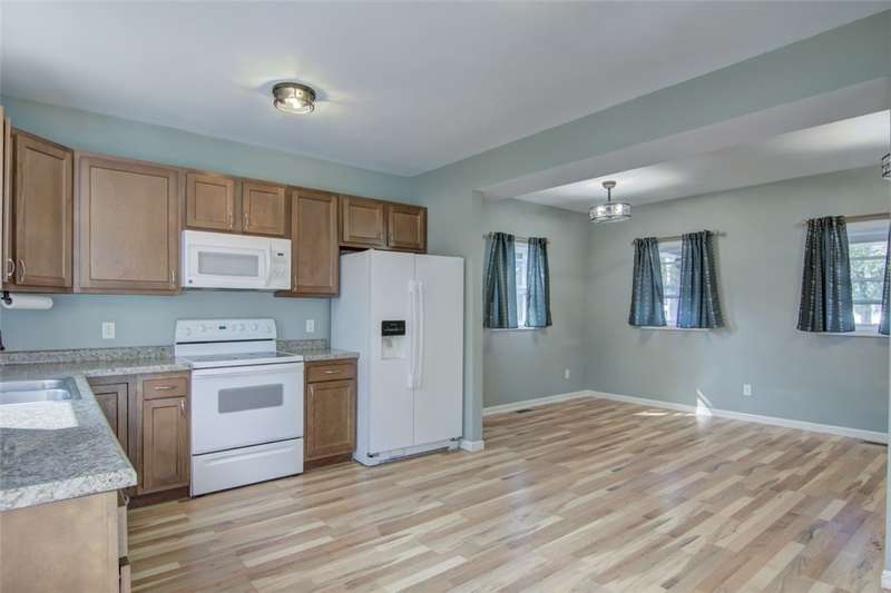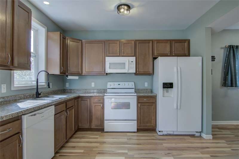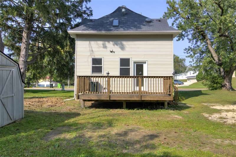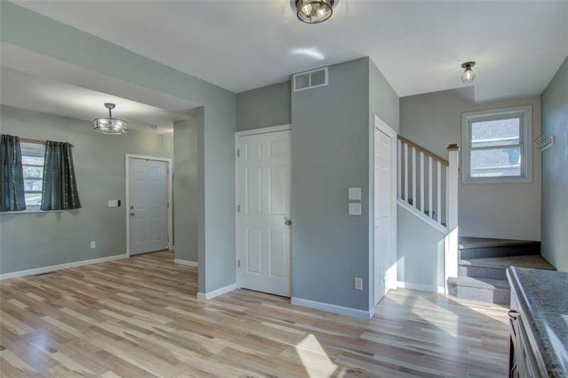 Easy to show on short notice: call for a showing! Open design fully remodeled several years ago with open kitchen and living room. Conveniently located to school bus access and plenty of parking in the rear yard and room for a garage. Main level 1/2 bath with full bath and three bedrooms on the second floor. Covered front porch, rear deck, garden shed, and wooded area to rear yard for privacy. Modern layout with a full basement with laundry and storage with central air and updated mechanicals. All elements of this home are remodeled and updated! Vacant and easy to see today!