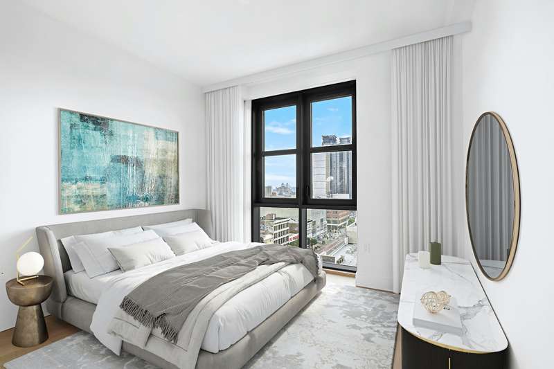 This immaculate south/east facing 7th floor two bedroom two bath boasts an expansive 15 x 22 living room space with giant floor to ceiling windows which allow for maximum light. The luxurious 16 x 10 open chefs kitchen is for kitchen lovers with tons of storage with a large south facing window which bring in the rays of sun and views of midtown and beyond. It is a one of a kind apt that has massive scale rooms to live in and create the space you dream of. There is no limiting spaces here. A smart design for a home.