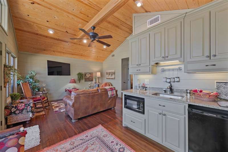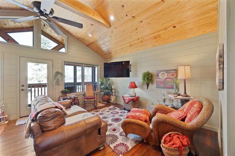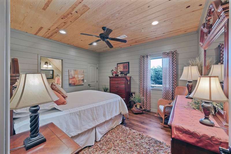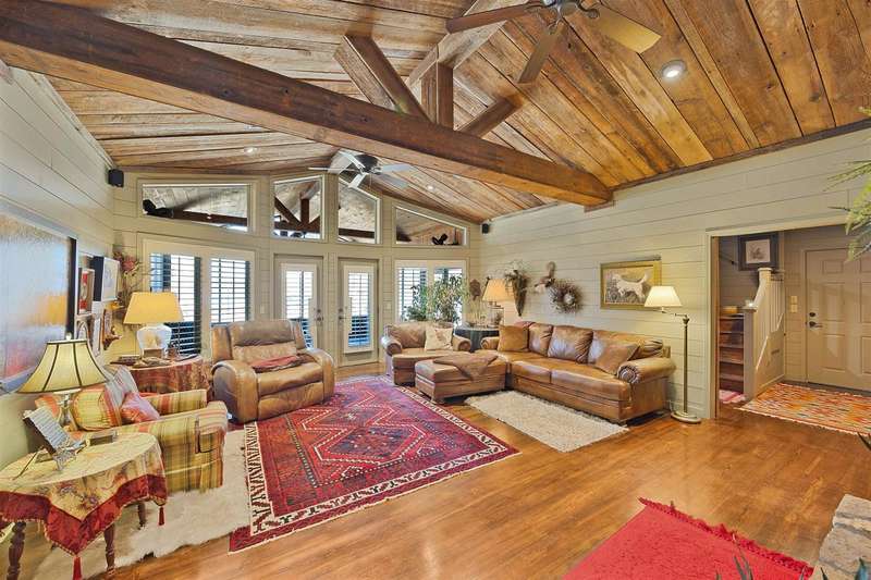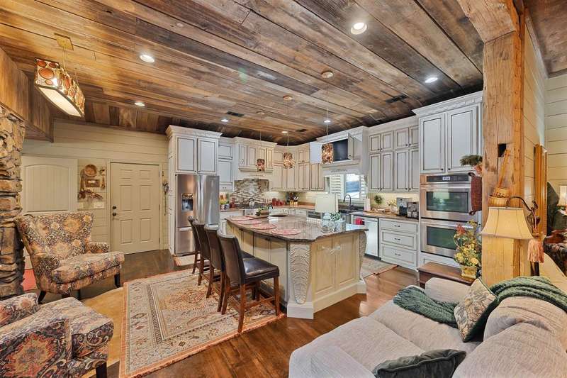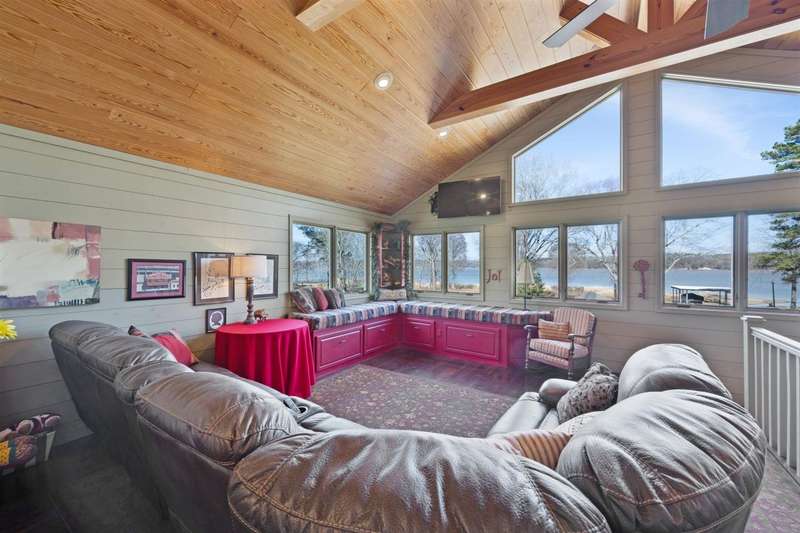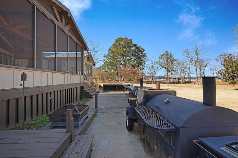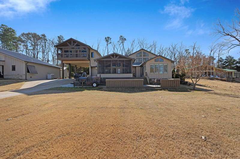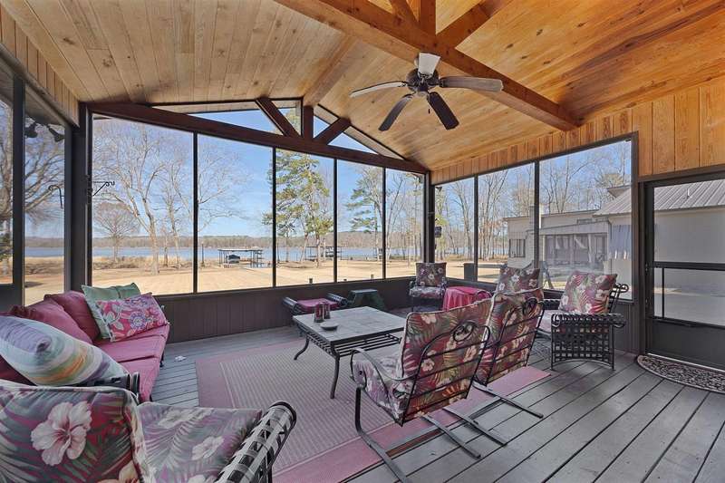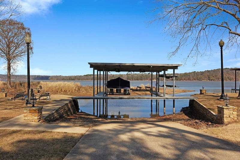 Spectacular Water Front Estate. Discover Luxury & functionality in this stunning Water Front Home, offering 8 Bdrms, 7.5 Ba across an expansive 6000 sq ft of living space. Designed for both comfort and entertainment. This property is a rare find w/ breathtaking views throughout. Primary & second Bdrm conveniently located on the main level. Spacious Kitchen, w/a Large Island, Jenn-Air Gas cooktop, double oven, built in microwave, custom Cabinetry, double sided Fireplace connecting the Kitchen & Living Rm. Beautiful Dinning area. Heart of Pine flooring & reclaimed barn board ceiling adding warmth & Character. Upper Level, Guest Suite 1, offers 2 Bdrm, 2 Ba Living & breakfast area & a Private entrance. Suite 2, offers 2 Bdrm, 1 Ba. Living & Kitchenette. Also. Suite 3, offers 2 Bdrm, 1 Ba. Living & Kitchenette, perfect for Multi-family use. Oversized garage w/full Bath perfect for kids coming off the Lake, Washer/Dryer, & Storm Shelter. Covered Boat Dock W/3 Lifts, private Boat Ramp.